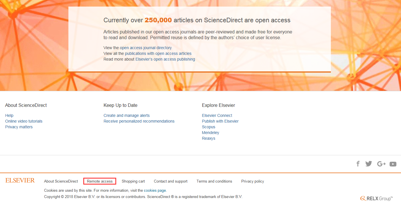 我校现已开通ScienceDirect数据库(以下简称SD)远程访问(Remote Access),读者在校网IP范围内激活个人远程访问功能并登录后,180天内可在校网范围外免费使用学校购买的SD文献资源,到期后可再次在校网内登录个人账户续期。