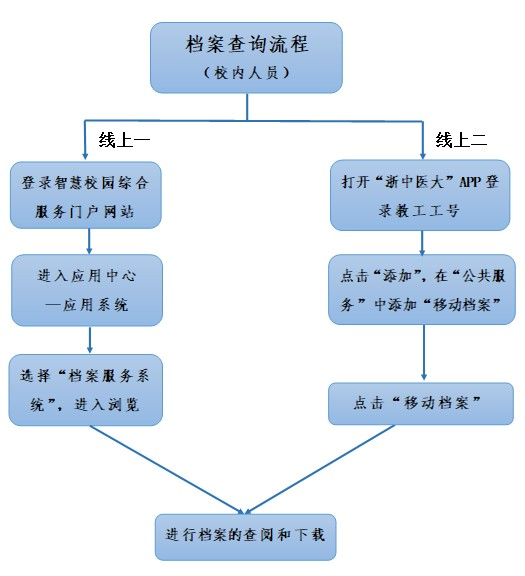 1.办公内网查阅。登录智慧校园办公内网→进入应用中心“应用系统”→选择“档案服务系统”→点击“档案查阅”→查阅和下载文档。
