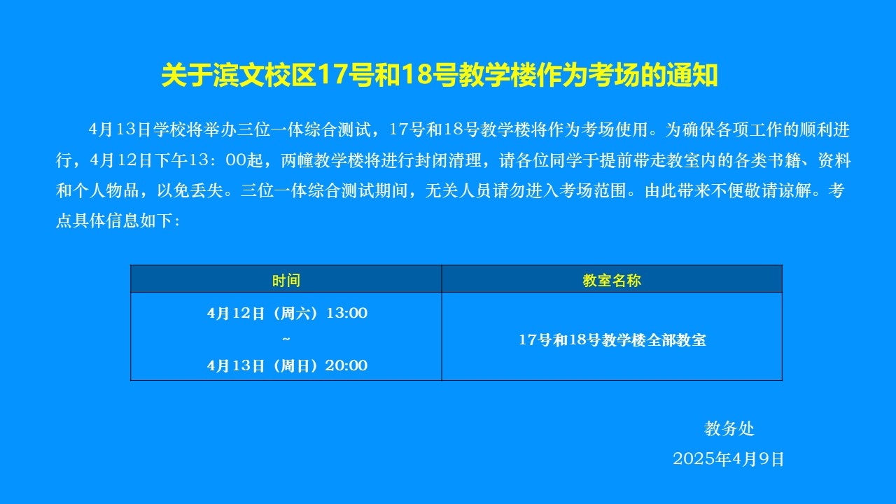 转发 关于滨文校区17号和18号教学楼作为考场的通知