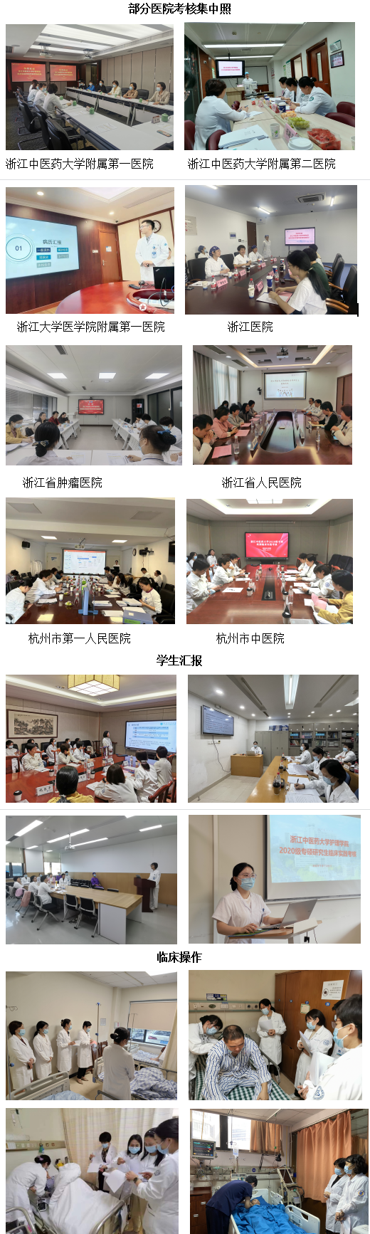 本次考核由bb贝博艾弗森官网周云仙副院长带队,邀请包括学院导师、各大医院专硕导师及临床专科护士在内的共42位考核专家,共同进浙江省中医院、浙江省新华医院、浙江省中山医院、浙江大学医学院附属第一医院、浙江大学附属邵逸夫医院、浙江省立同德医院、浙江省人民医院、浙江省肿瘤医院、浙江医院、杭州市第一人民医院、杭州市中医院、杭州市妇产科医院、杭州市红十字会医院13家基地医院对学院34名2020级专硕研究生进行临床实践考核。