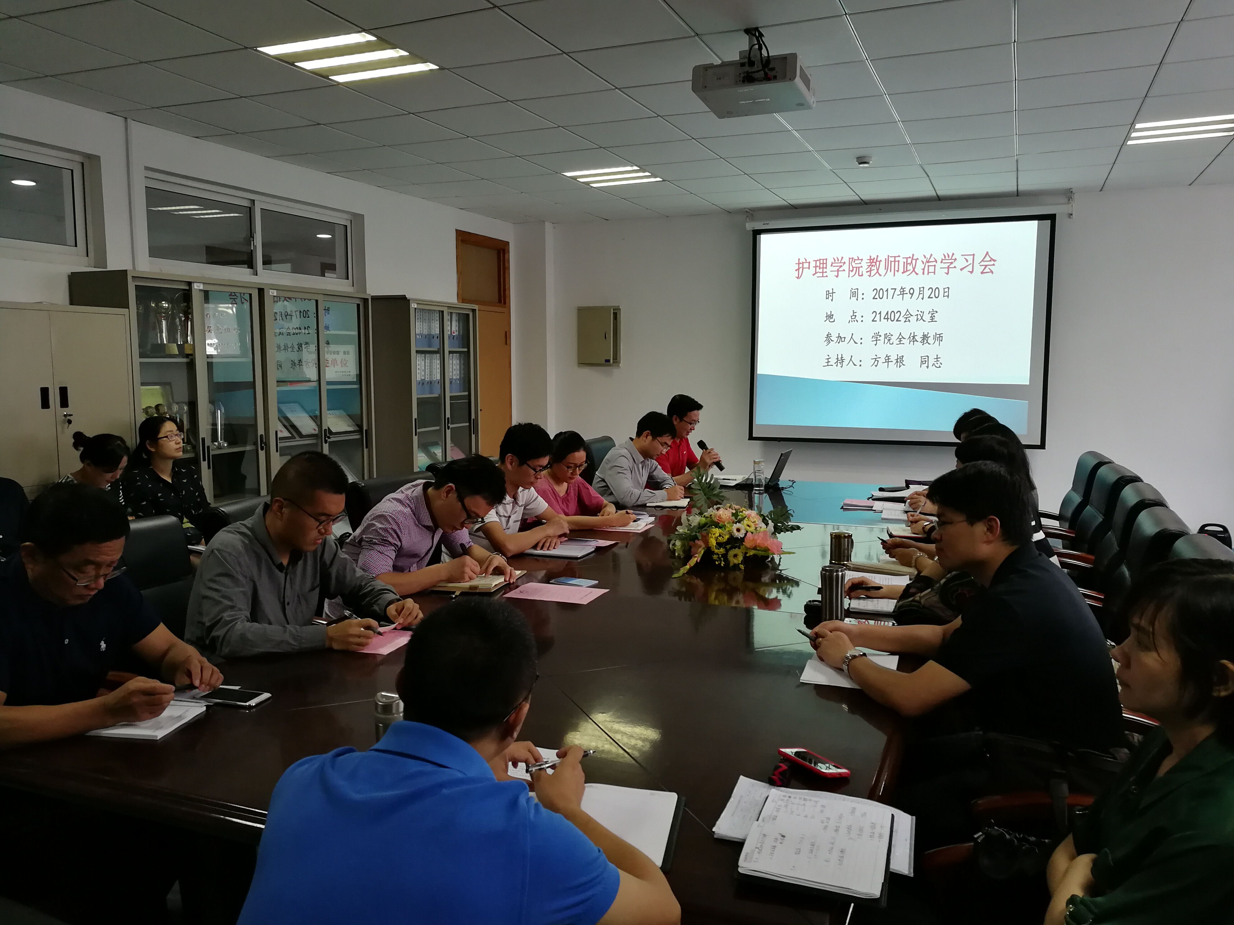 9月20日下午,bb贝博艾弗森官网党总支在21402会议室组织安排教师政治学习会,重点学习习近平总书记在省部级主要领导干部专题研讨班上的重要讲话(简称“7.26”重要讲话),传达学习省委常委、宣传部部长葛慧君在全省高校书记校长读书会上的讲话,并对开展向黄大年、姚玉峰、陈莹丽同志学习的主题教育实践活动进行了再动员再部署。学习会由学院党总支书记方年根同志主持并宣讲,学院全体教师参加学习会。