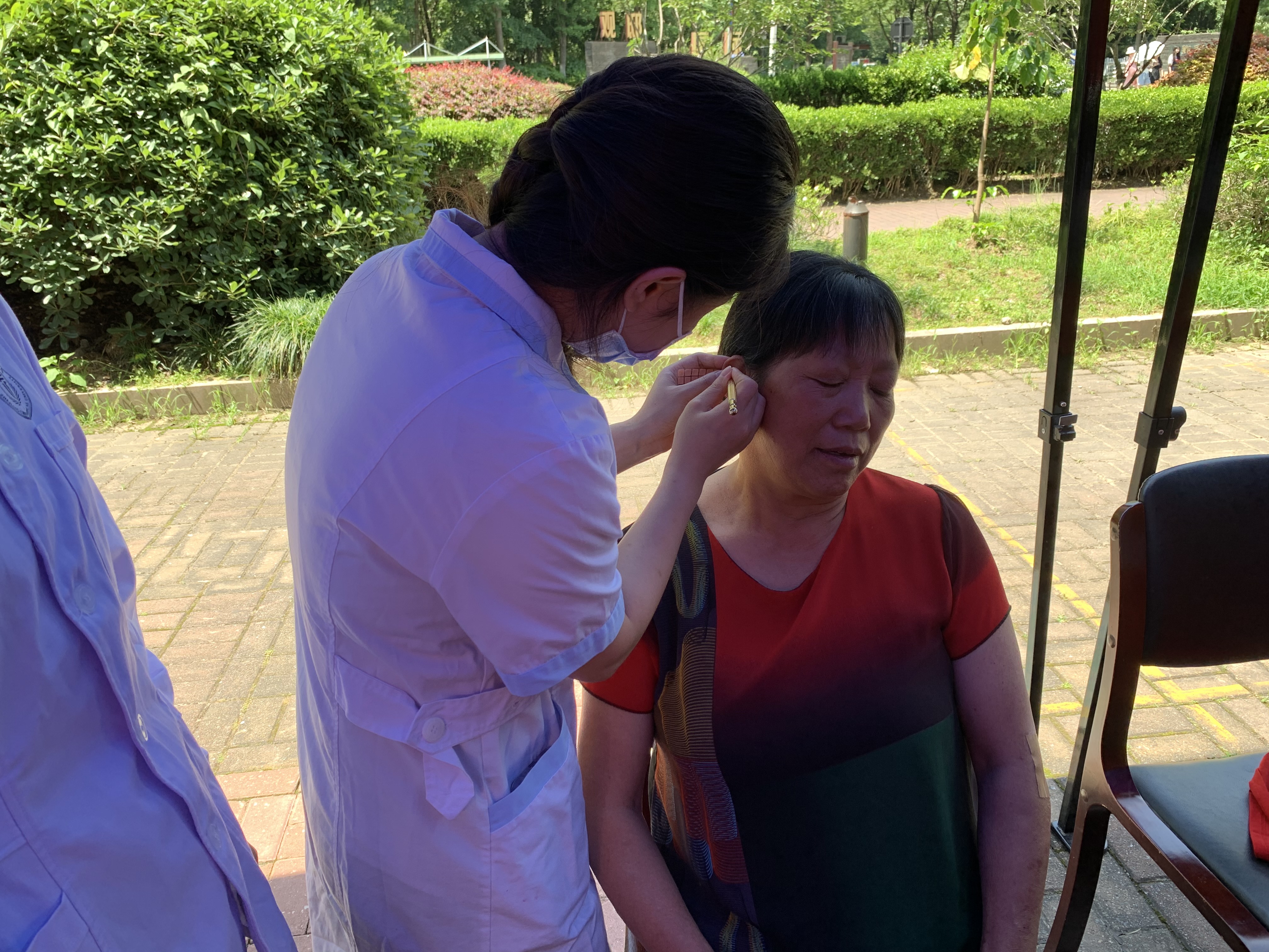 党支部书记郭颖老师充分发挥扎实的中医专业功底,对居民进行针灸、舌诊、脉诊,针对每个居民的不同情况,耐心地叮嘱他们各种日常注意事项,详细介绍防病和养生知识,提出合理的膳食、运动等生活指导,做到“未病先防”、“既病防变”、“预后防复”。无论是中医基本保健还是健康咨询她都耐心细致、尽职尽责,她的服务态度和服务质量受到来访居民的交口称赞。