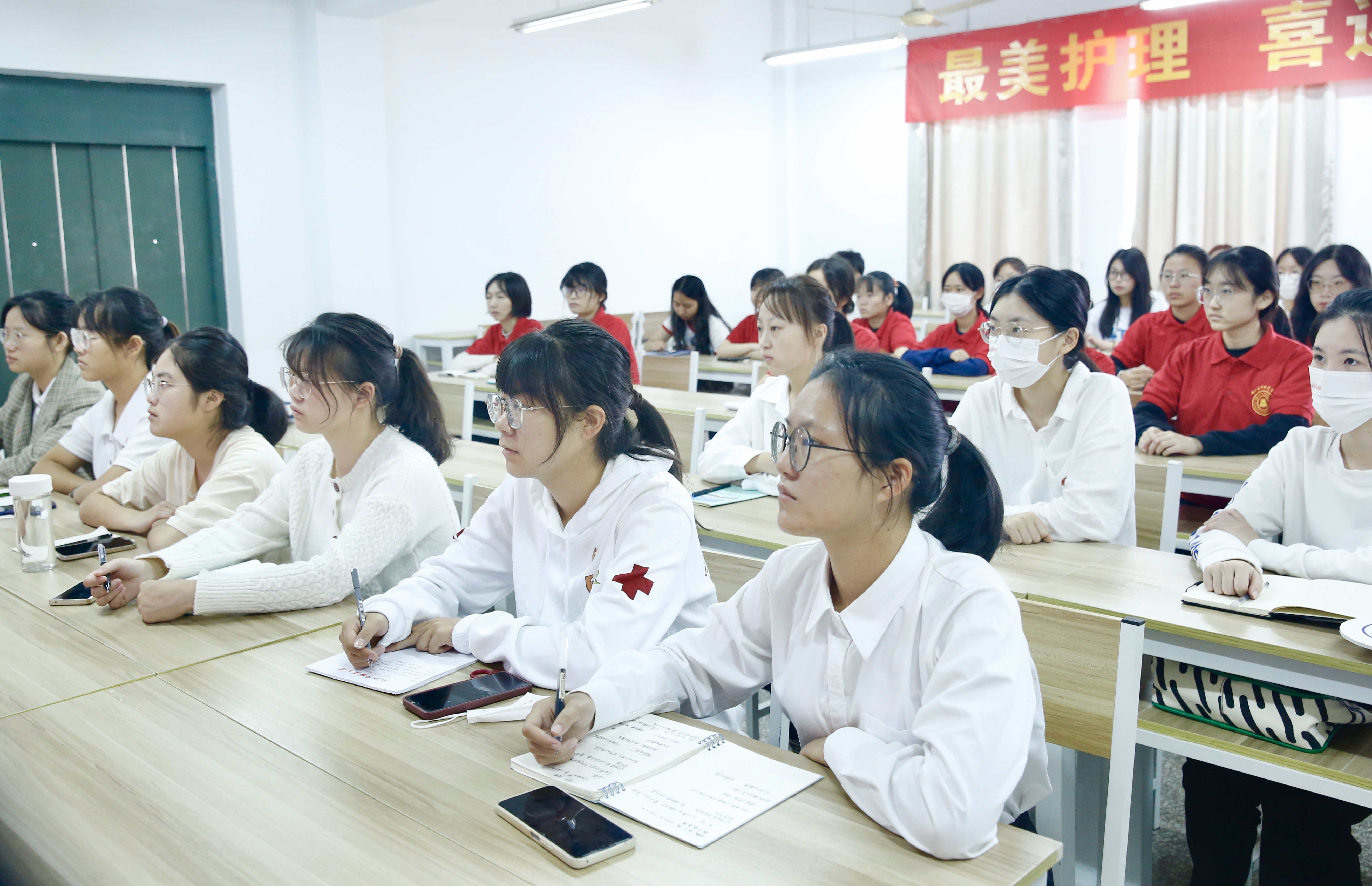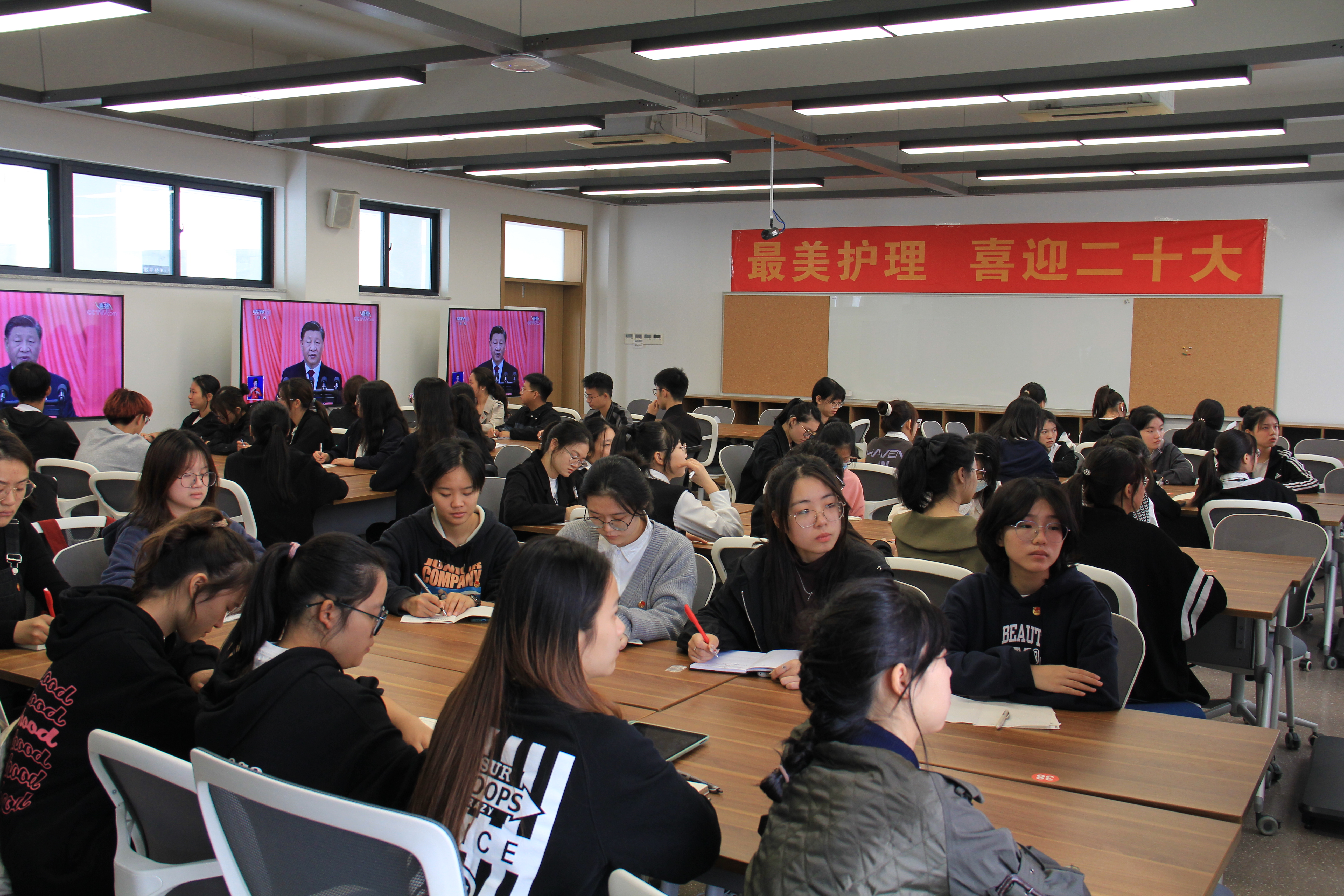 会场内,大家聚精会神地听报告,通过直播画面,大家切身感受到了团结、和谐、奋进的会场气氛。会后,大家反响热烈,纷纷表示要认真学习、深刻领会大会精神,听党话、跟党走,在坚持和发展中国特色社会主义,实现社会主义现代化建设中贡献力量、积极作为,在一流中医药大学建设中踔厉奋发、勇毅前行,凝聚起同心共筑“最美护理”的磅礴力量!