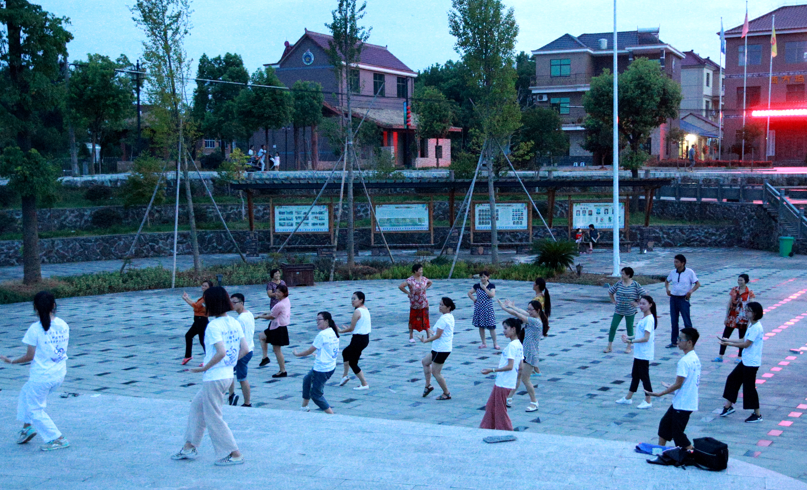 随后,实践团与当地畲族风情园“联合”举办文化交流晚会。当地畲民精心准备的砍柴舞、竹竿舞与实践团Boombastic的融合碰撞,赢得现场掌声阵阵。晚会在实践团成员“奔跑吧,骄傲的少年……”的嘹嘹歌声中落幕。晚会结束,实践团还举办了一场别开生面的“广场养生”活动——现场教学七星功,将中医保健文化撒播在畲乡土地上。