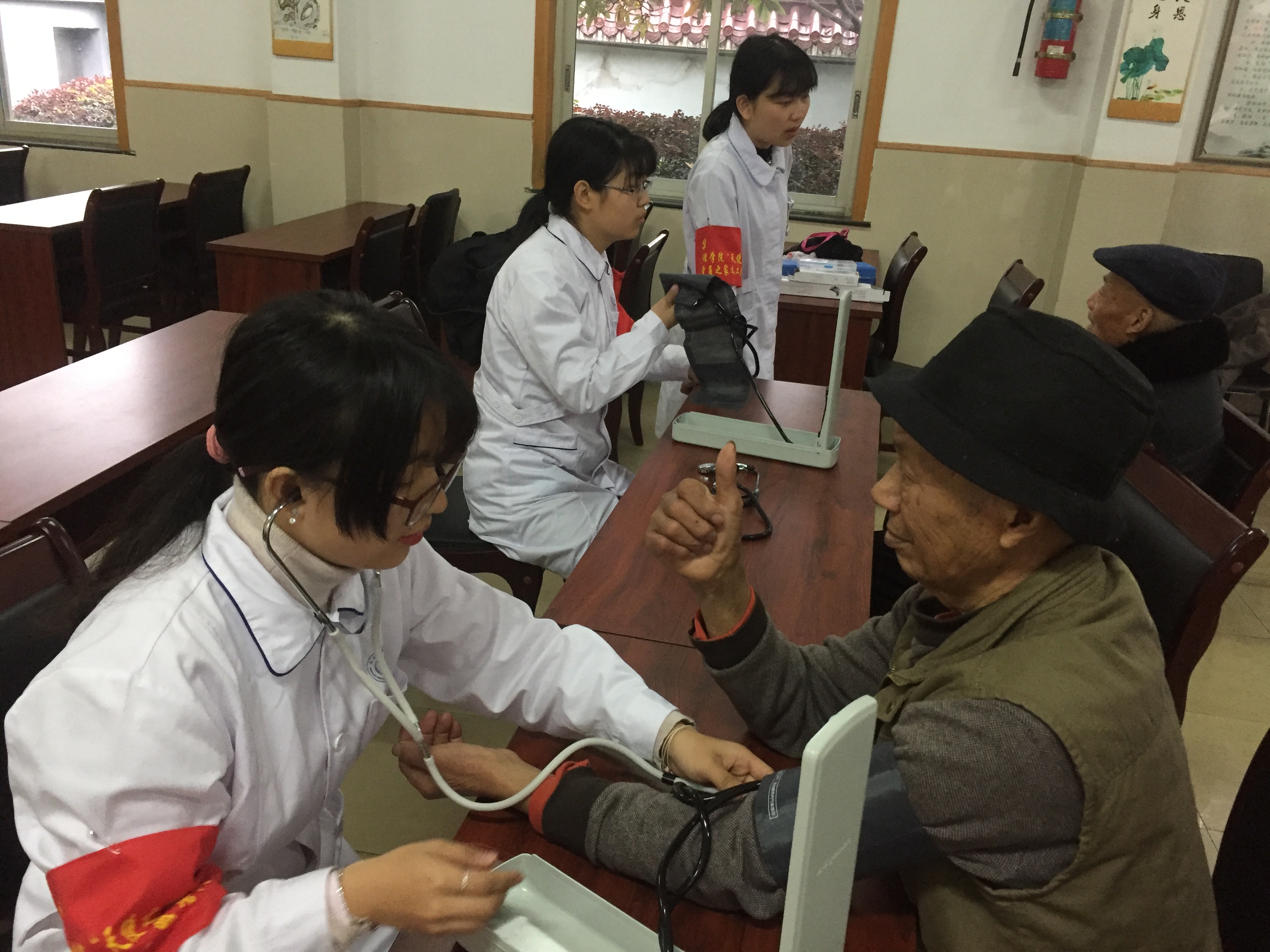 此次活动旨在针对老年人的生理特点,结合老年护理学的相关知识,应用护理程序,为老年人进行健康指导,加强老年人的基础护理,让老年人安享晚年生活。志愿者们发挥自己的专业特长为老人进行生命体征的测量、穴位按摩以及关于高血压、糖尿病的健康宣教。来到敬老院后,志愿者们受到了敬老院负责人和老人们的热情欢迎,在老年活动室里志愿者成员用带来的血压计和听诊器为他们一一量了血压,另一些志愿者成员为他们按摩,刺激人体特定的穴位,激发人的经络之气,以达到通经活络、调整人的机能、祛邪扶正的目的。志愿者们和老人们一起聊天,并在聊天的过程中向老人解释宣讲老年人高血压、糖尿病的状况以及这两种状况下日常饮食的注意事项,整个老年活动室都很热闹,更有老人向志愿者们竖起了大拇指。