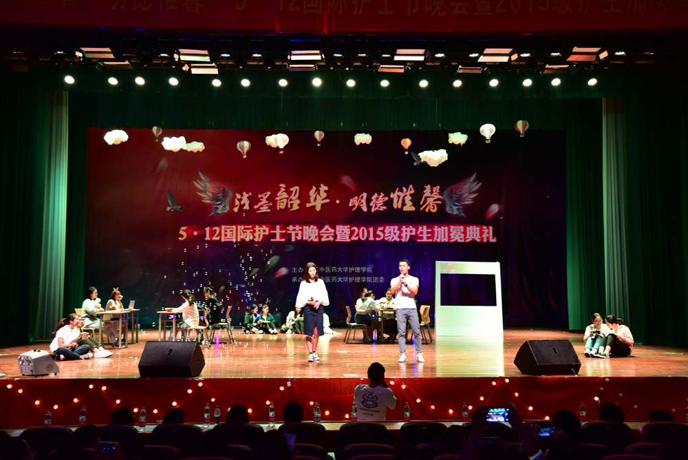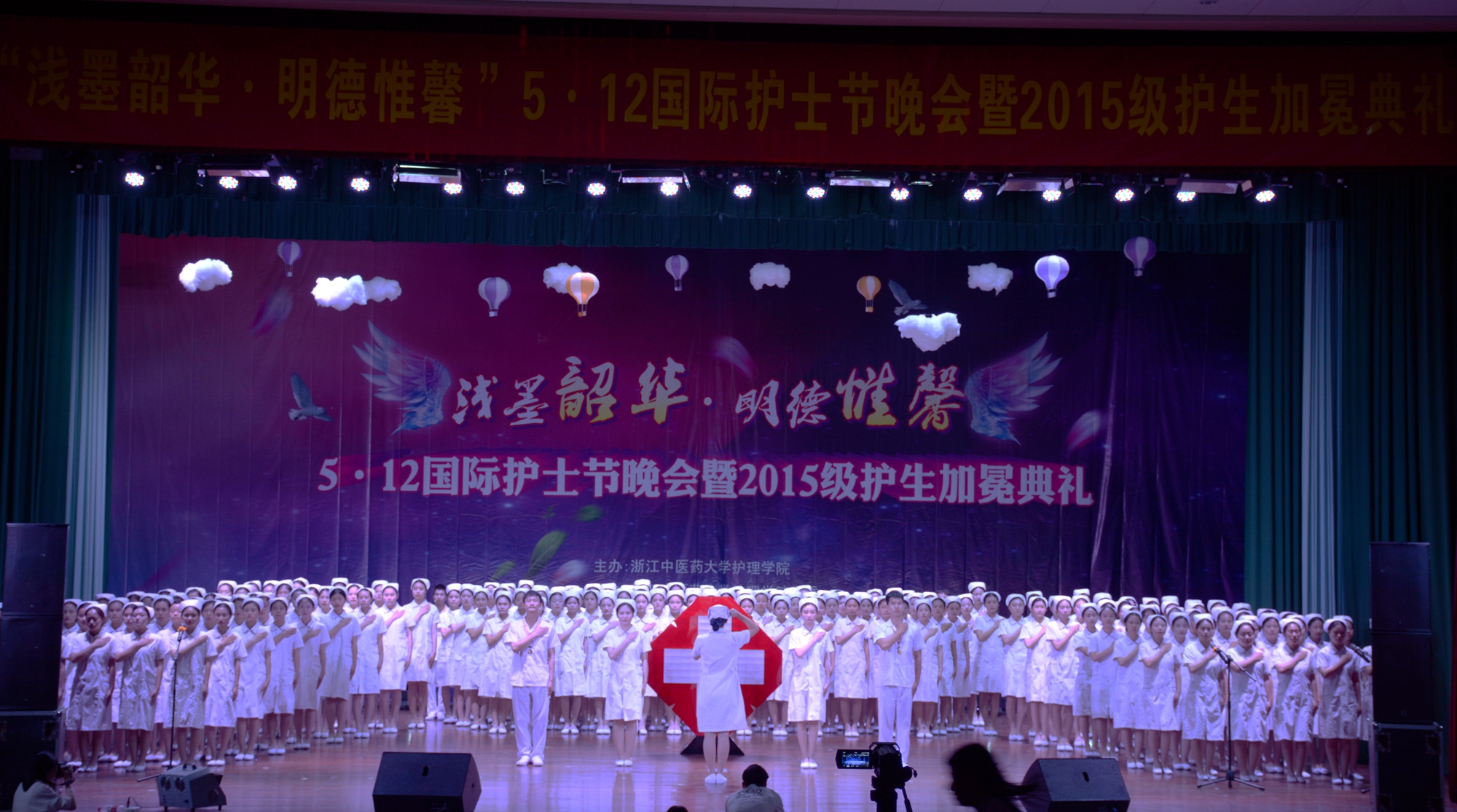 五月春风慷慨送暖,燃情白衣燕尾之姿。5月10日晚18点,bb贝博艾弗森官网“浅墨韶华·明德惟馨”国际护士节晚会暨2015级护生加冕仪式在滨文校区行政楼报告厅隆重举行。校党委书记孙秋华,副书记陈刚,校党委委员、宣传部部长陈烈荣,副部长沈备娟,学工部部长方年根,校团委副书记王斌艳,浙江省中医护理骨干人才高级研修班全体学员、bb贝博艾弗森官网全体老师出席了本次晚会。同时,浙江大学医学院附属妇产科医院护理部主任徐鑫芬、浙江大学医学院附属邵逸夫医院护理部主任庄一渝、浙江省人民医院护理部主任陈肖敏、浙江省中医院护理部主任俞国红、杭州市第一人民医院护理部主任李益民、杭州市中医院护理部主任冯莺、浙江省新华医院护理部主任徐敏、浙江省立同德医院护理部主任徐东娥等杭城各大医院护理部主任应邀前来给2015级护生们授帽。