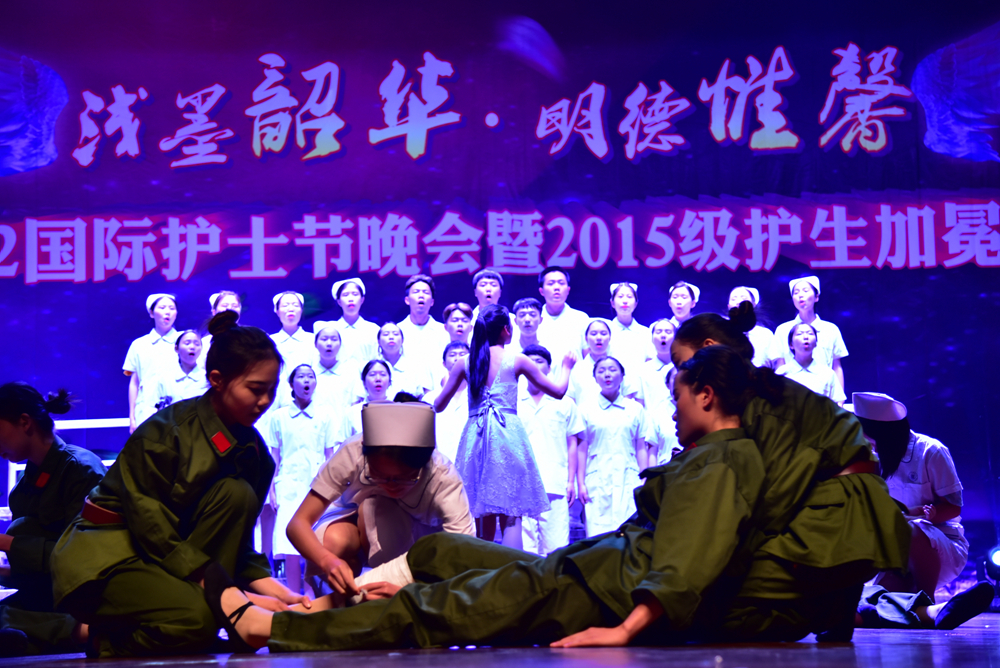晚会在bb贝博艾弗森官网何桂娟院长的讲话中拉开帷幕,何院长对辛勤工作的护理工作者表达了崇高的敬意,对怀揣天使梦想的护生致以节日的问候。在随后的加冕仪式中,各位护理前辈为全体护生戴上了洁白神圣的燕尾帽。“欲戴皇冠,必承其重”,作为第一届入住富春校区的学子,2015级护生在富春江畔磨炼自己,在滨文路上破茧成蝶。白衣飘然的护生手捧烛灯,肩负护生责任,坚定而庄严地宣誓,将誓言信守于心。沙画视频演绎感动,昂扬朗诵描绘诗篇,表演中白衣天使精神的传承让护生更添了一份职业的使命感。