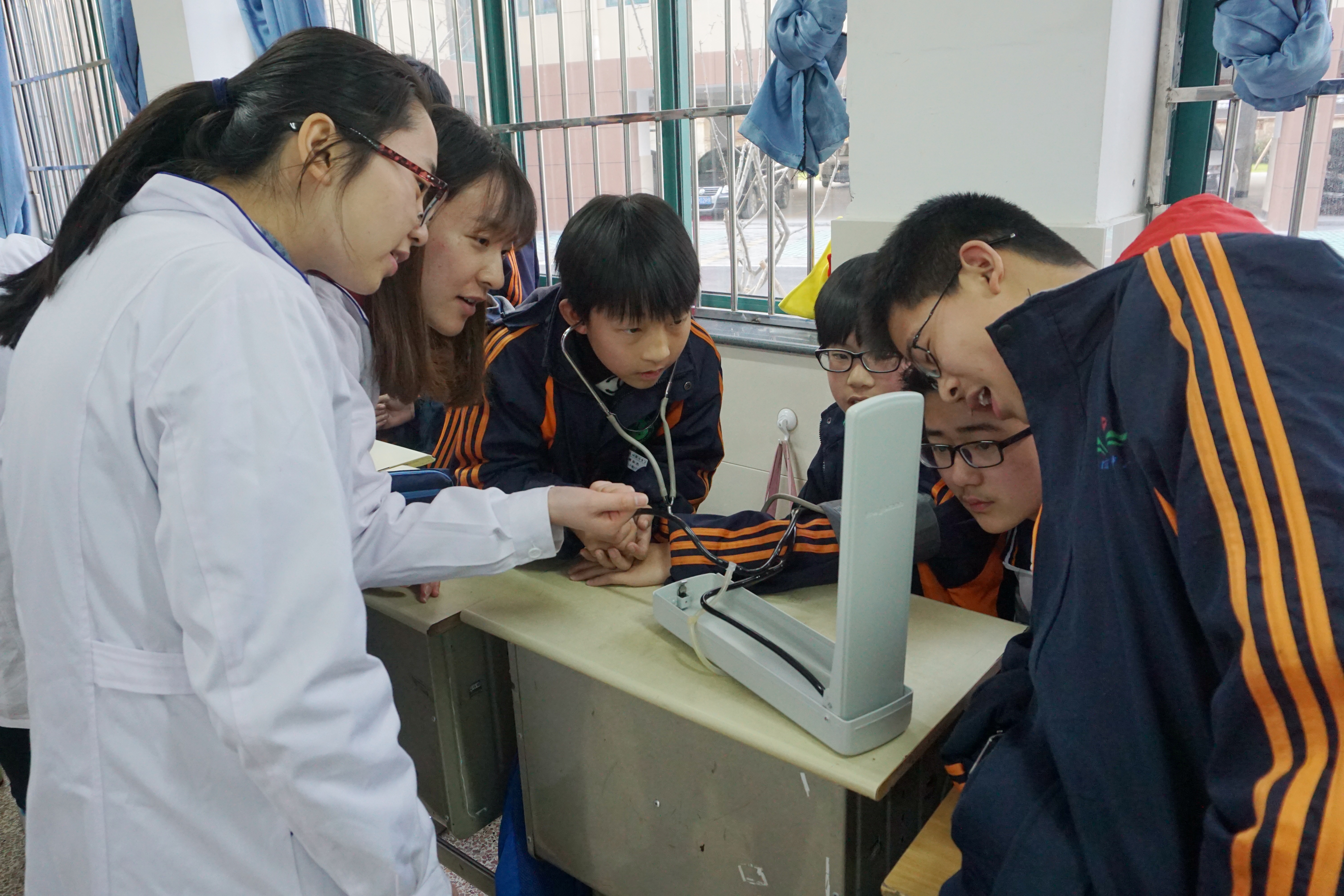 考虑到青春期少男少女们对生理问题的敏感及害羞心理,避免彼此间的尴尬,活动针对男女生开展不同的教学培训。作为活动的重点与特色,此次豆蔻学堂讲解了经期前、经期中、经期后的乳房自查、穴位按摩及清洁卫生等注意事项,向初中生推荐生理期后的中草药食疗法,并现场演示茶包的制作方法,让每位同学在充分青春期生理知识的同时,了解中草药知识,走进中医药文化。随着活动的进行,同学们也逐渐摆脱刚开始的羞涩,积极踊跃提问包括痛经及经期失调等问题。实践出真知,讲堂也安排了互动体验环节,第一时间学以致用,检验教学成效。相对于女生场,男生场则重点普及量血压和心肺复苏等急救知识,利用模拟人、真人进行演示,使同学们有了更直观的体验。现场同学也是跃跃欲试,纷纷要求现场操作。三月天气还透着些许凉意,但是却掩盖不了同学们的热情,活动现场气氛非常活跃,最后的礼品赠送更是乐坏了还带着些许稚气的初中生。
