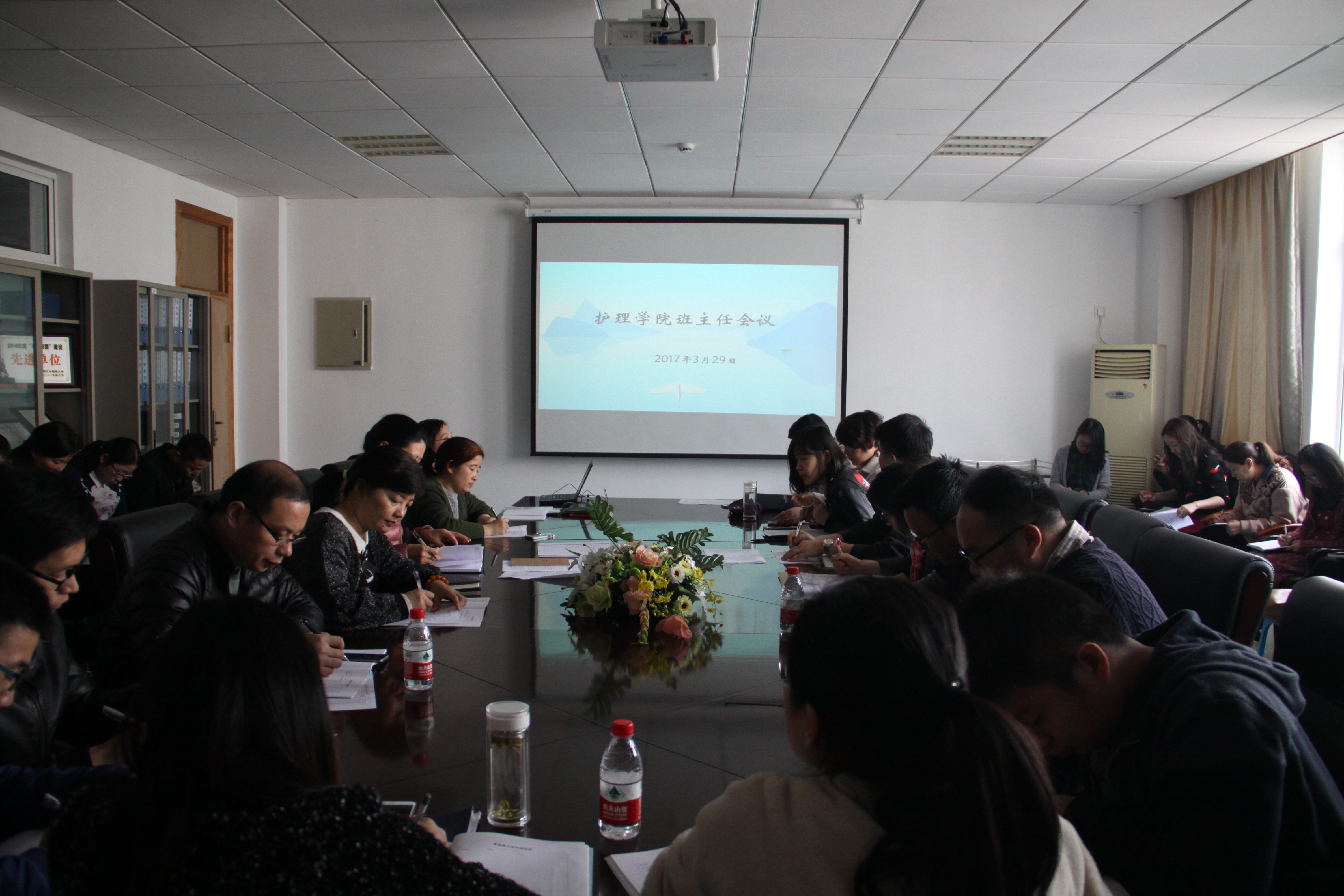 学院团委副书记汤亚玲通报了学院5.12护士节晚会筹备情况、学生科研情况、学生竞赛等情况,这些工作压力大、任务重,因此希望各位班主任全力配合学院,把学生工作做好。