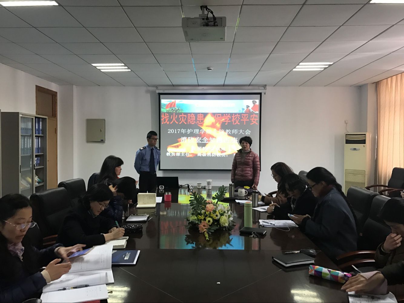 会后,特邀高级消防指导员为全院教师结合近期省内外的重特大火灾进行宣讲,消防专家详细阐述了电线、手机、电动车因不当使用引起的火灾事故原因,分析了最易发生火灾的情况,介绍了遭遇火灾如何发出求救信号、逃生和使用灭火器、湿毛巾、灭火弹、防毒面具,告诫大家要养成人走、灯熄、电停的良好习惯。生动的消防安全知识讲座,使全体教师对火灾的严重危害有了直观体会,惨痛的代价为每位教师敲响了安全的警钟。通过开展专题讲座,进一步提高了消防安全意识和防火自救的基本知识,加强了对消防应急措施的运用,为学院安全运行提供了重要保障。