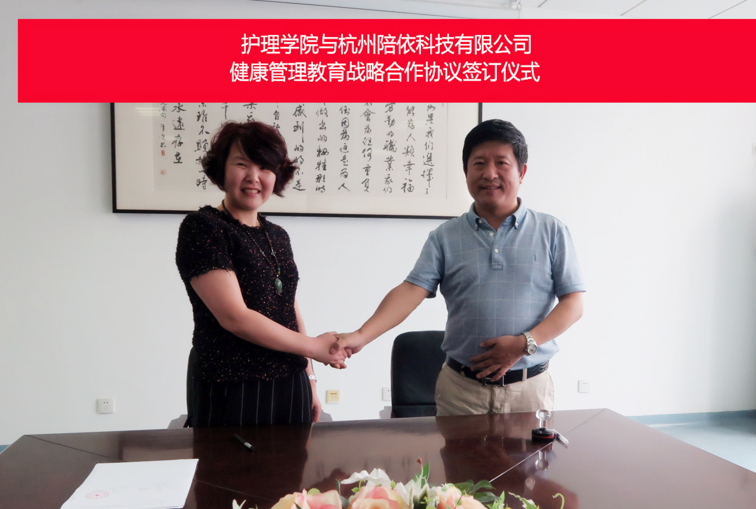 2016年9月29日下午,正值浙江省中医药大学校庆日,bb贝博艾弗森官网bb贝博艾弗森官网与杭州陪依科技有限公司签订“陪医伴伴”国际医疗健康管理教育中心战略合作签字仪式在21号楼404会议室举行。出席本次仪式的有:杭州海奕投资管理有限公司董事付忠东,杭州陪依科技有限公司合伙人严豪杰等企业代表及学院全体党政领导班子成员。