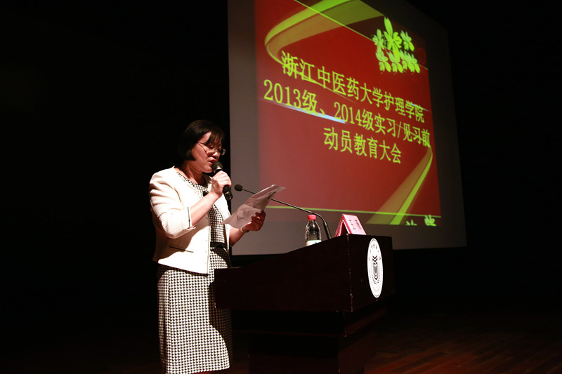 5月26日晚,bb贝博艾弗森官网在23号楼行政报告厅开展了2013级、2014级实习/见习前动员教育大会。浙江大学医学院附属第一医院护理教育中心主任王薇老师,校友胡辛老师应邀参加本次动员大会。