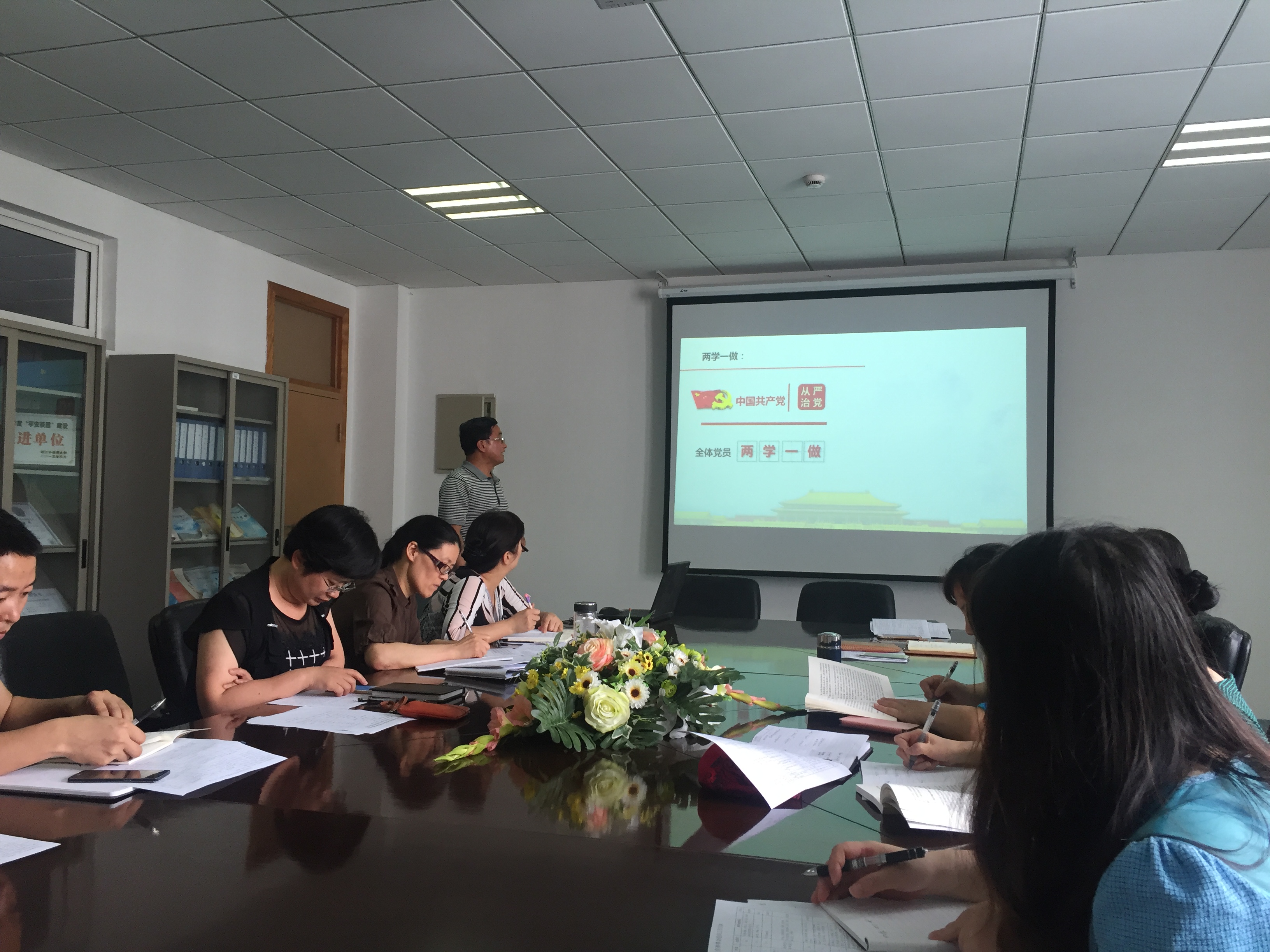 刘书记从“两学一做”学习教育的背景;“两学一做”具体要求;党章党规主要内容概述;教工党员表率作用四个方面为教工党支部党员及其他教工党员上了一堂生动的党课。