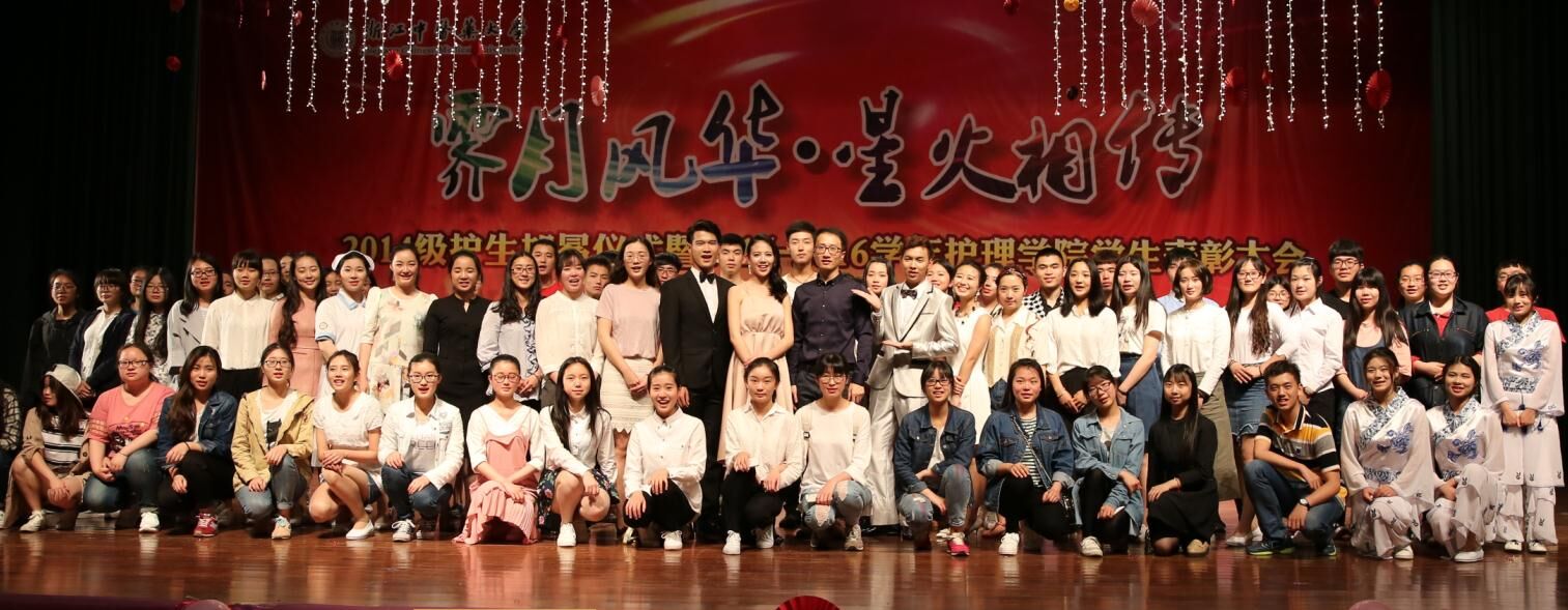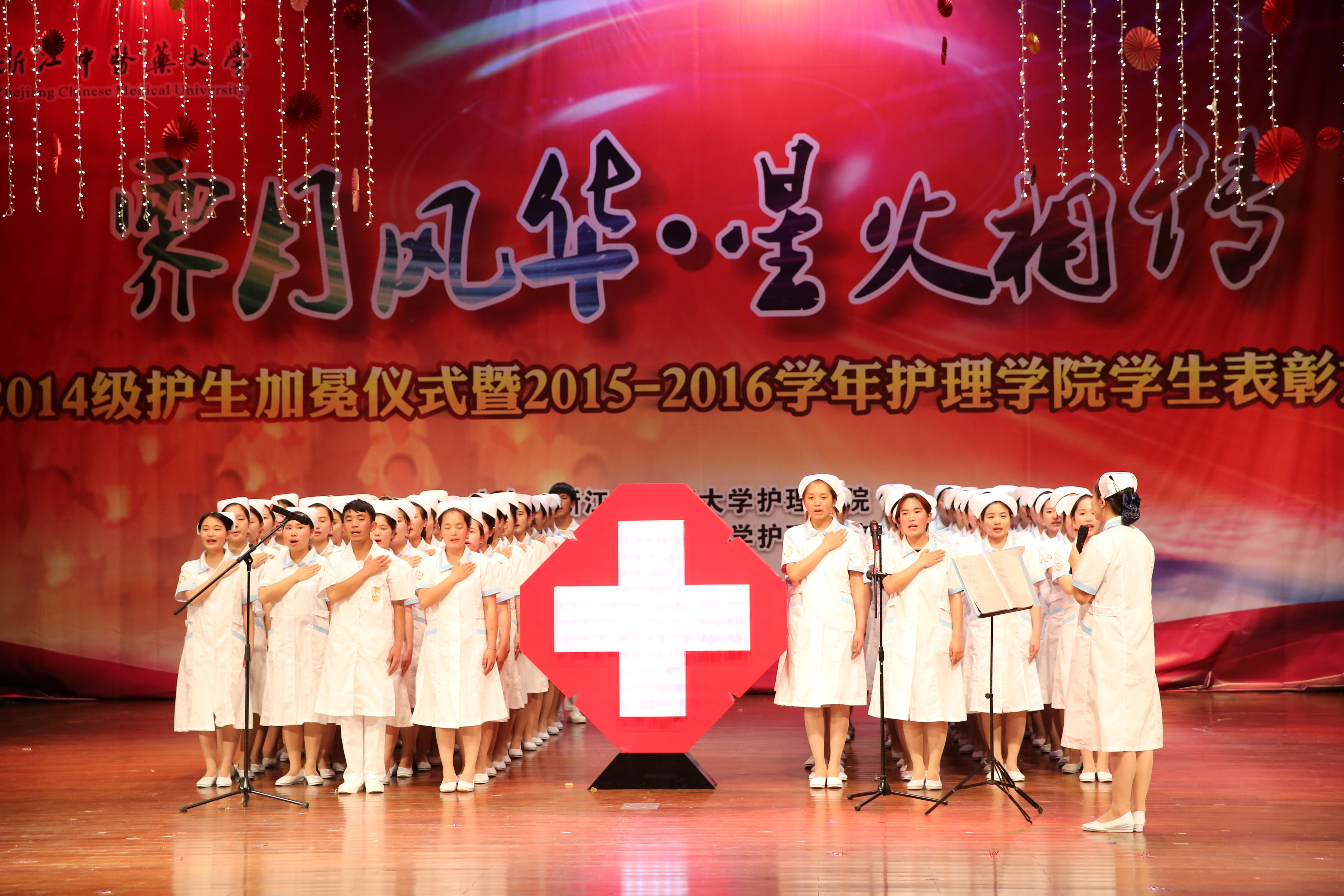 传南丁格尔护理之光,授白衣护士燕尾之冠。随着国际护士节的到来,5月11日晚,bb贝博艾弗森官网“霁月风华·星火相传”2014级护生加冕仪式暨2015-2016学年学院学生表彰大会在行政楼报告厅隆重举行。校党委宣传部副部长沈备娟、党委学工部副部长石磊峰应邀出席了本次晚会。晚会还邀请了浙江省人民医院、浙江大学医学院附属儿童医院、浙江大学医学院附属妇产科医院、浙江医院、杭州市中医院、杭州市第一人民医院、bb贝博艾弗森官网附属第一医院、bb贝博艾弗森官网附属第二医院等省市级各大医院的护理部主任为护生们授帽。
