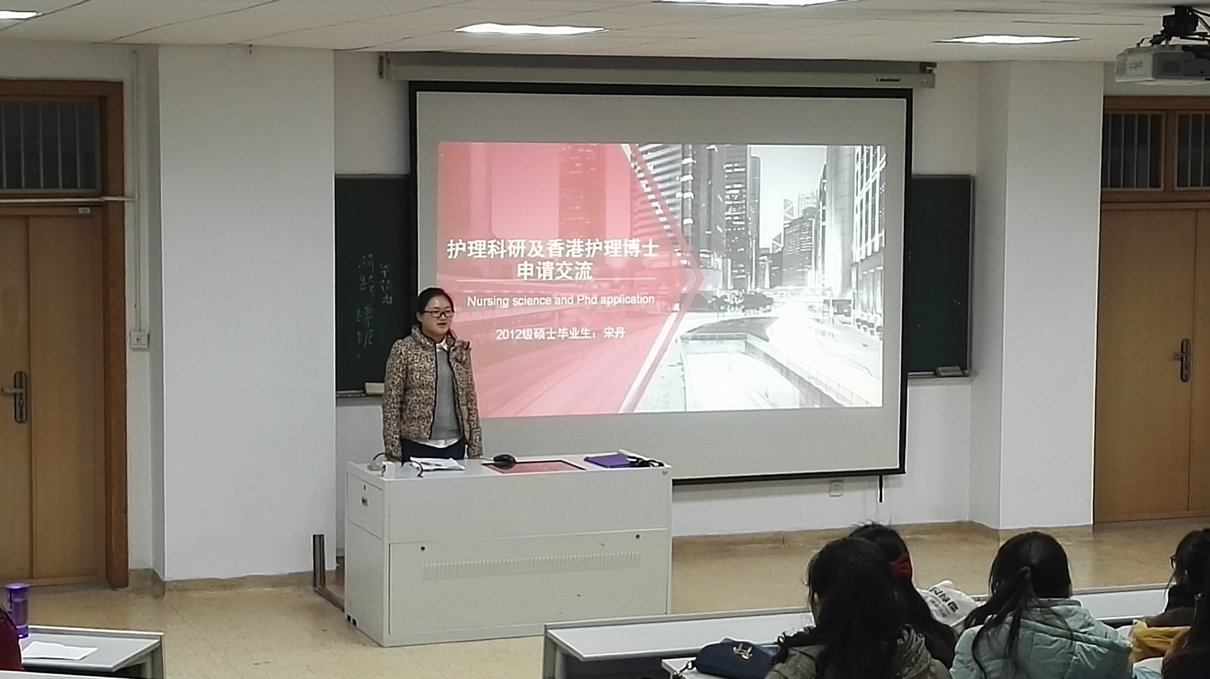 本次天使梦讲堂的主讲人为学院2015届硕士毕业生宋丹。宋丹同学现于香港中文大学攻读博士学位,曾荣获国家奖学金、香港政府奖学金等,曾在中华护理杂志发表多篇论文,科研经验十分丰富。她介绍了香港中文大学那打素bb贝博艾弗森官网的项目、研究方向以及研究进展。她根据bb贝博学生科研的现状,给予基础又详实地指导。同时针对护理学专业深造做了仔细的讲解,包括如何申请境外护理学博士、香港博士生活现状和现阶段国际护理科研等多方面的内容。课上宋丹学姐引经据典,解答各种疑难困惑,悉心教导赢得了同学们的掌声。课后与同学的亲切交流更拉进了与学妹们的关系,在场的同学都受益匪浅。