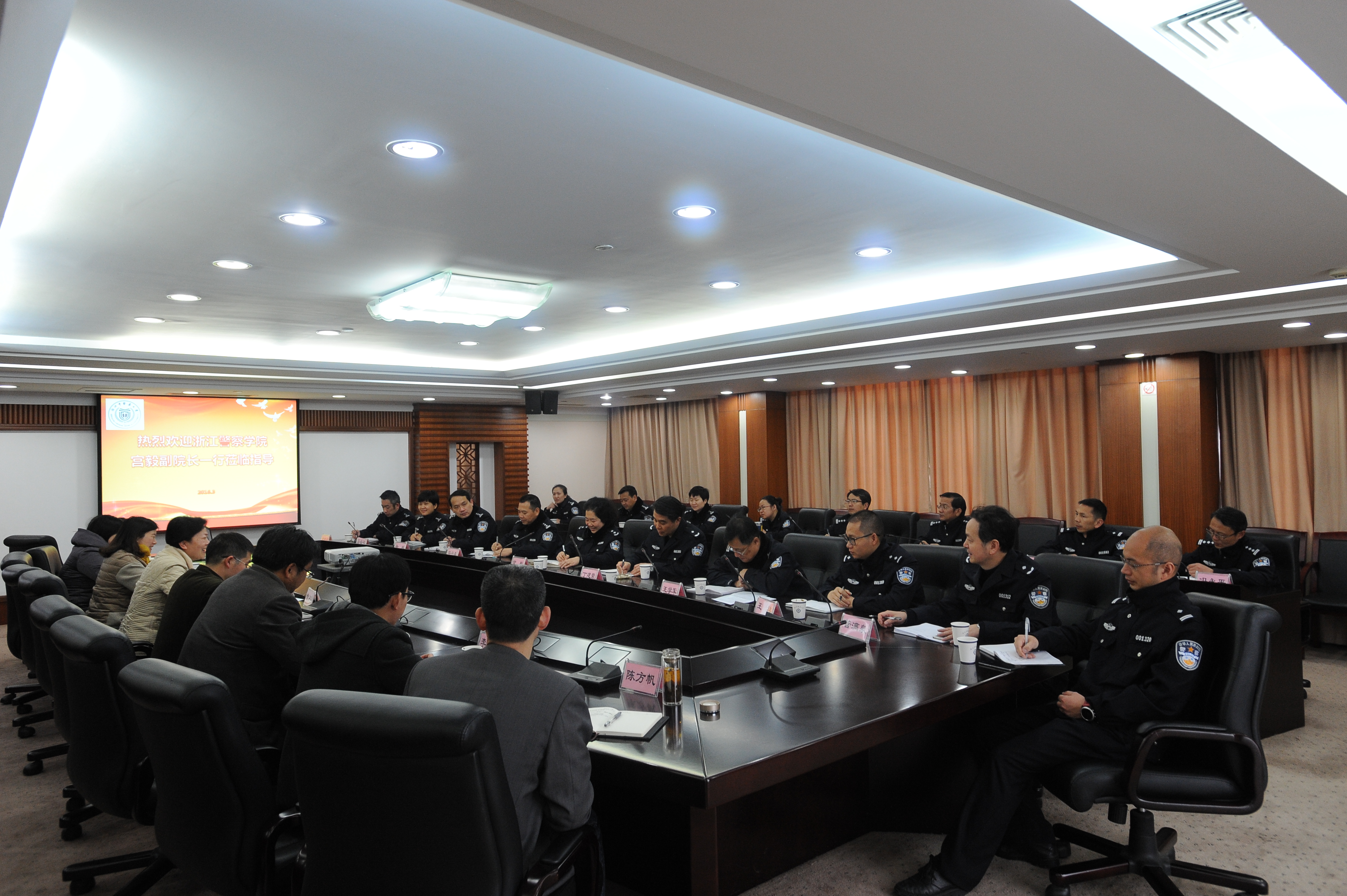 3月9日,浙江警察学院宫毅副院长一行17人来我校考察调研教学巡查相关工作,学校教务处、bb贝博艾弗森官网、人文学院相关负责人在行政楼第六会议室接待了调研团。