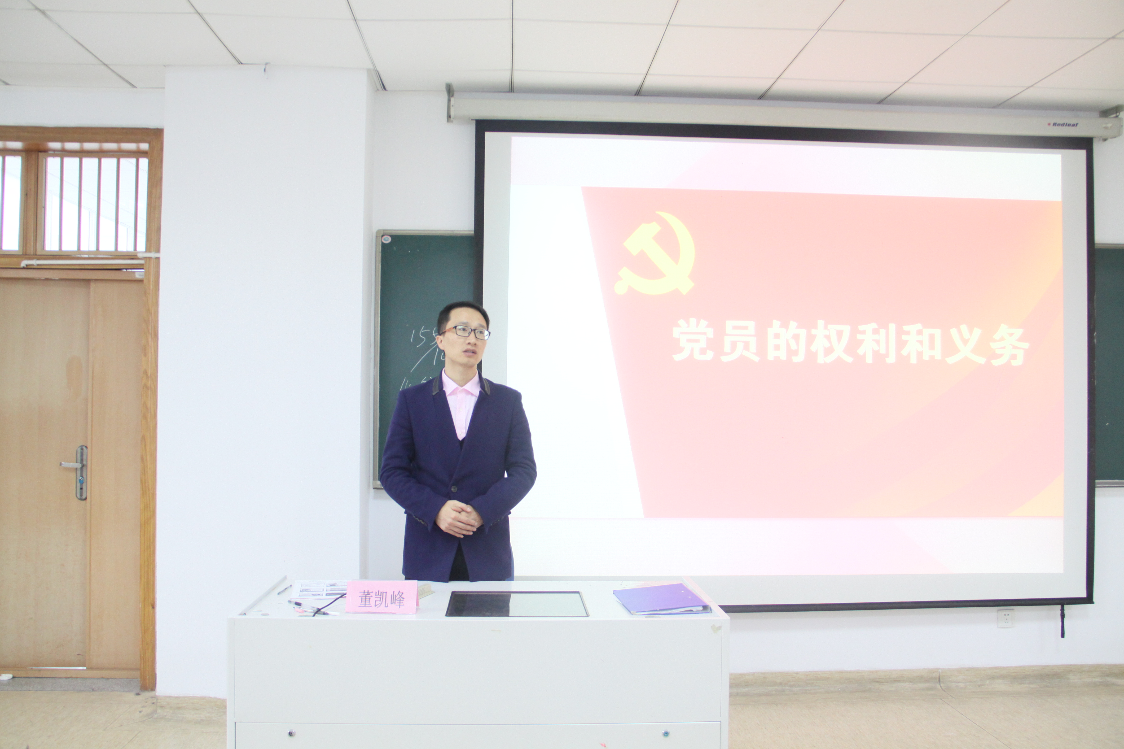 引导入党积极分子系统学习党的性质、指导思想、党的宗旨、共产党员的条件等基本知识,坚定共产主义理想信念,增强责任意识,明确入党目的,端正入党动机,树立正确的世界观、人生观和价值观,特此学院党总支举办入党积极分子培训班。会上,学院党总支副书记董凯峰介绍了党员的权力与义务,并强调了4项重点:一是明确自己为何入党,做个优秀的人,从身边小事做起,从学习、生活各方面提升自己综合能力。二是入党对大学生意味着什么,唯一的好处是逼自己优秀,着重于实际行动,而不仅仅是喊口号,这样才能更好地挖掘自己的潜能。三是提高政治、思想觉悟意识,做到在党言党,积极了解党的时政情况,多宣传党中央正面、积极的工作,作为党员要自觉维护好党的形象,始终秉持全心全意为人民服务的宗旨,实实在在地为他人提供帮助。四是利益面前的选择,面对集体利益与个人利益,党员要吃得起苦,吃得起亏,一切以集体利益为先。
