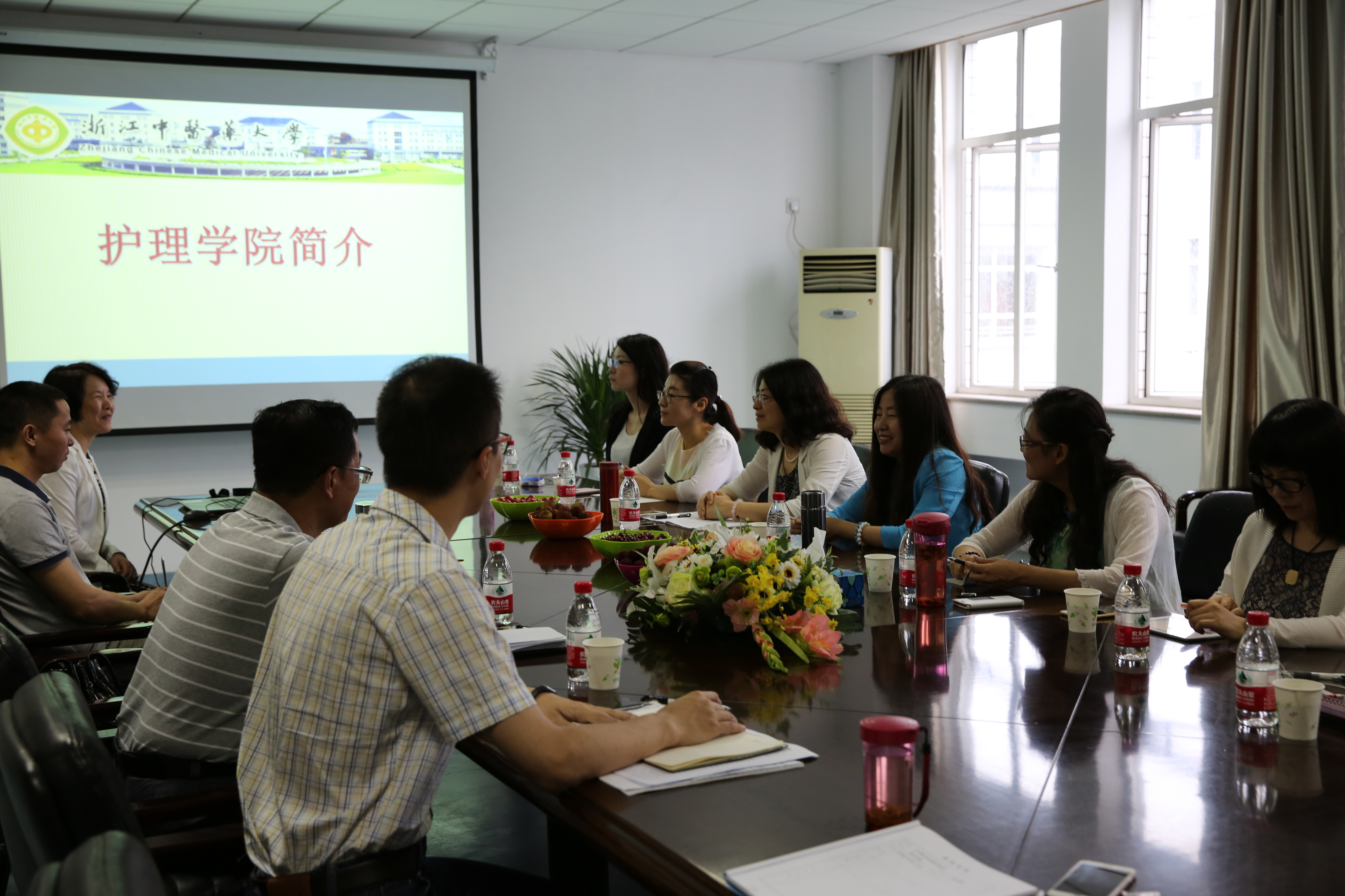 在调研会上,何桂娟副院长(主持工作)对郝院长一行的到来表示热烈欢迎,并且从师资队伍、教育教学、科学研究、社会服务、党建与学生工作等各方面介绍了bb贝博的总体情况。刘师少副书记(主持工作)就bb贝博完善的党员教育培训体系、品牌党员志愿服务队、“天使之翼”党员之家建设、同等学历课程班的开展等方面进行了详细说明。沈翠珍副院长就如何推广“护教一体化”、中医教学师资情况、后期临床教学质量监控、新教师培养等方面做了进一步说明。董凯峰副书记就“天使之路”系列活动、网络公众平台建设以及如何通过第二课堂培养学生的核心能力等问题进行了全面剖析。两院也就进一步加强教师及学生之间的交流互访进行了商讨。最后,各位老师参观了bb贝博实验室,并对实施学生自主管理、网络预约平台等内容进行了介绍和探讨。