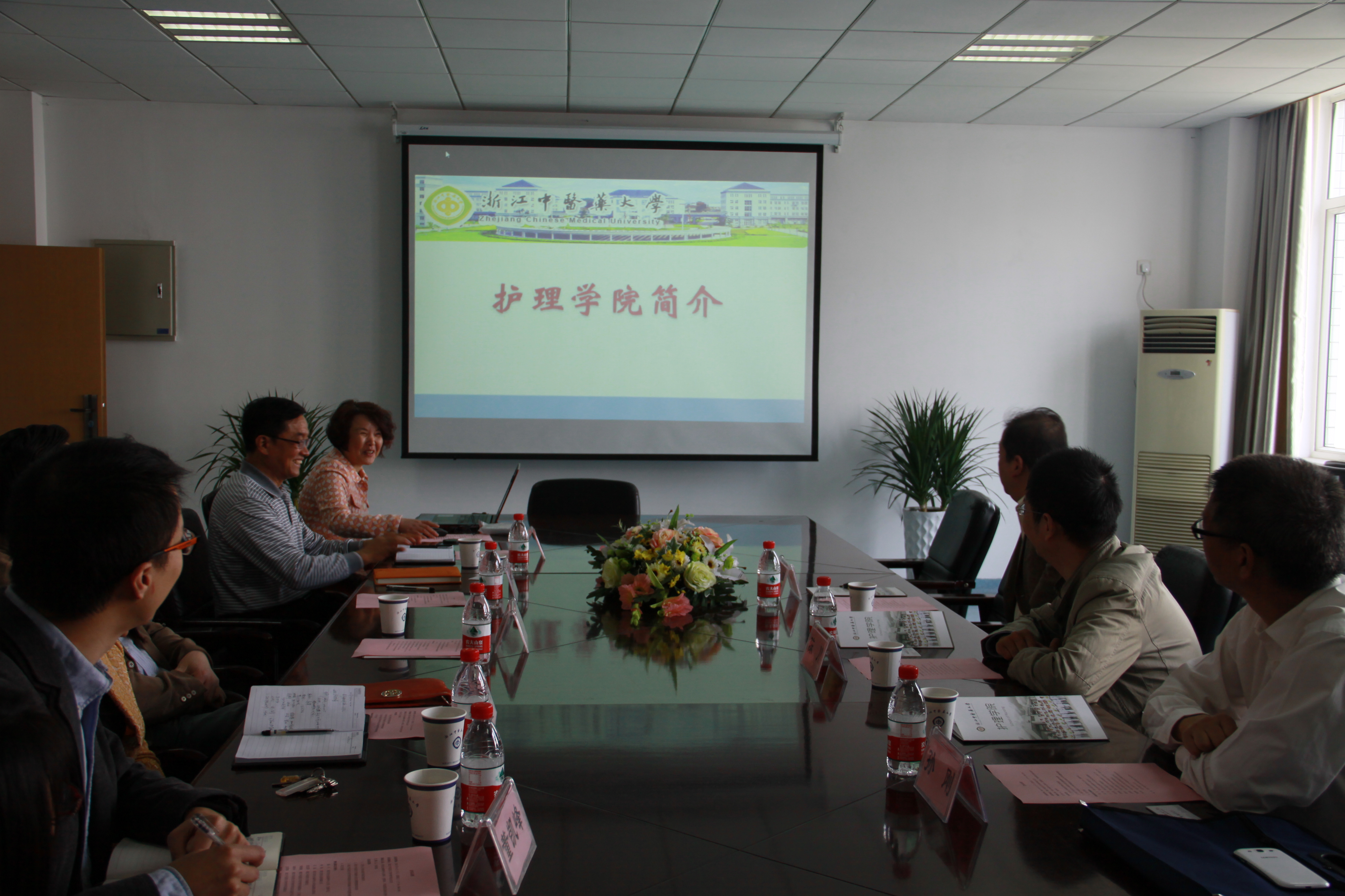 2015年4月17日上午,浙江省福利中心主任、党委书记陈川,浙江省福利中心副主任孙刚及浙江省福利中心科技标准化部长石磊一行到bb贝博艾弗森官网进行参观考察。陈川主任一行在学院会议室就健康产业领域的问题,进行交流和沟通,我校副校长张光霁、bb贝博艾弗森官网副院长(主持工作)何桂娟、bb贝博艾弗森官网党总支副书记(主持工作)刘师少、bb贝博艾弗森官网副院长沈翠珍、bb贝博艾弗森官网党总支副书记董凯峰及相关老师参加了本次会议。