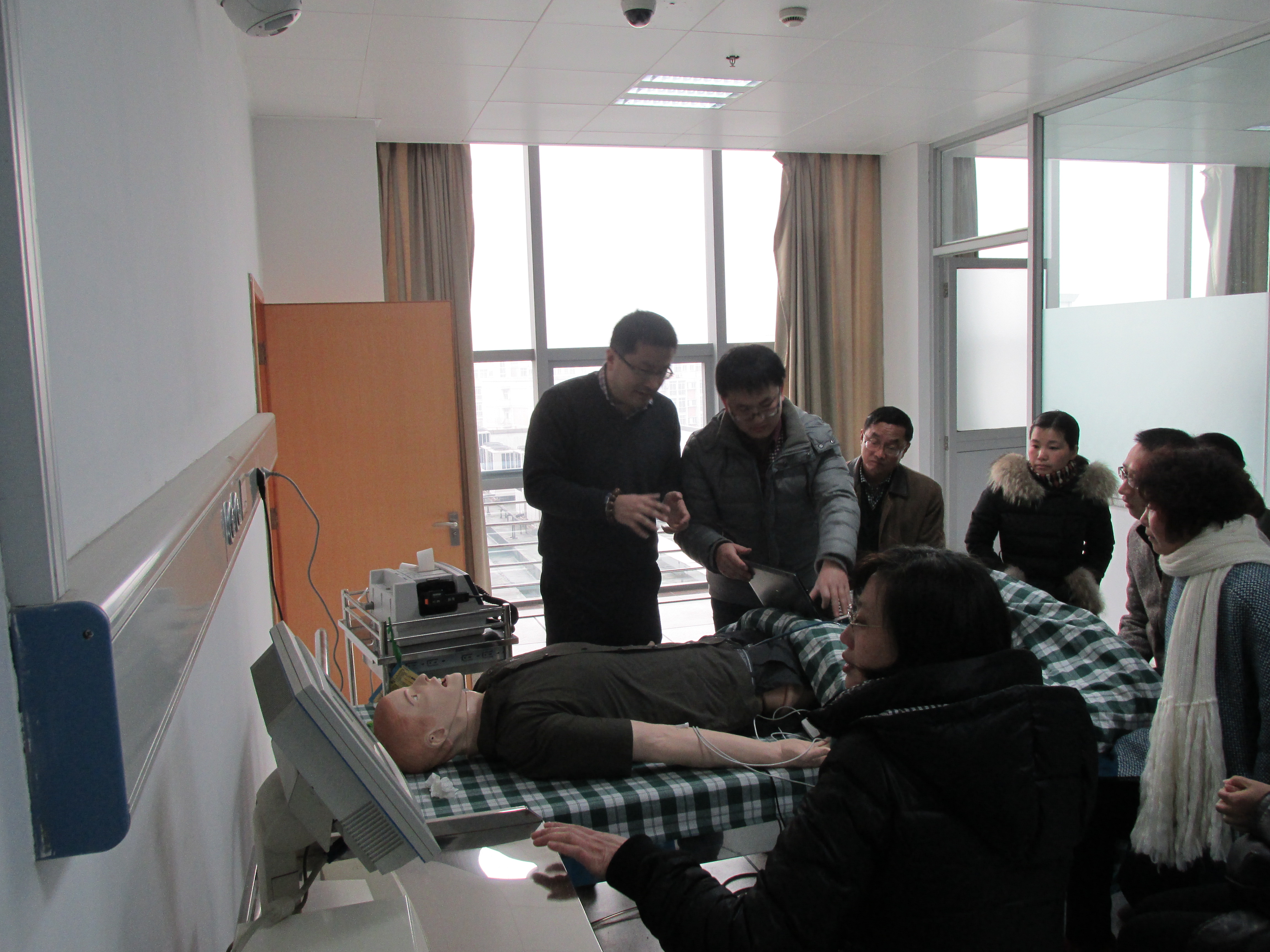 另外还参观考察了浙江医学高等专科学校模拟医院,在该校模拟医院负责人的陪同下,主要参观了该校临床实验技能中心,并对 高仿真护理综合技能实验室进行了重点考察。,实验室负责老师重点就就智能综合模拟人系统的组成、系统的功能、和应用范围进行了介绍。