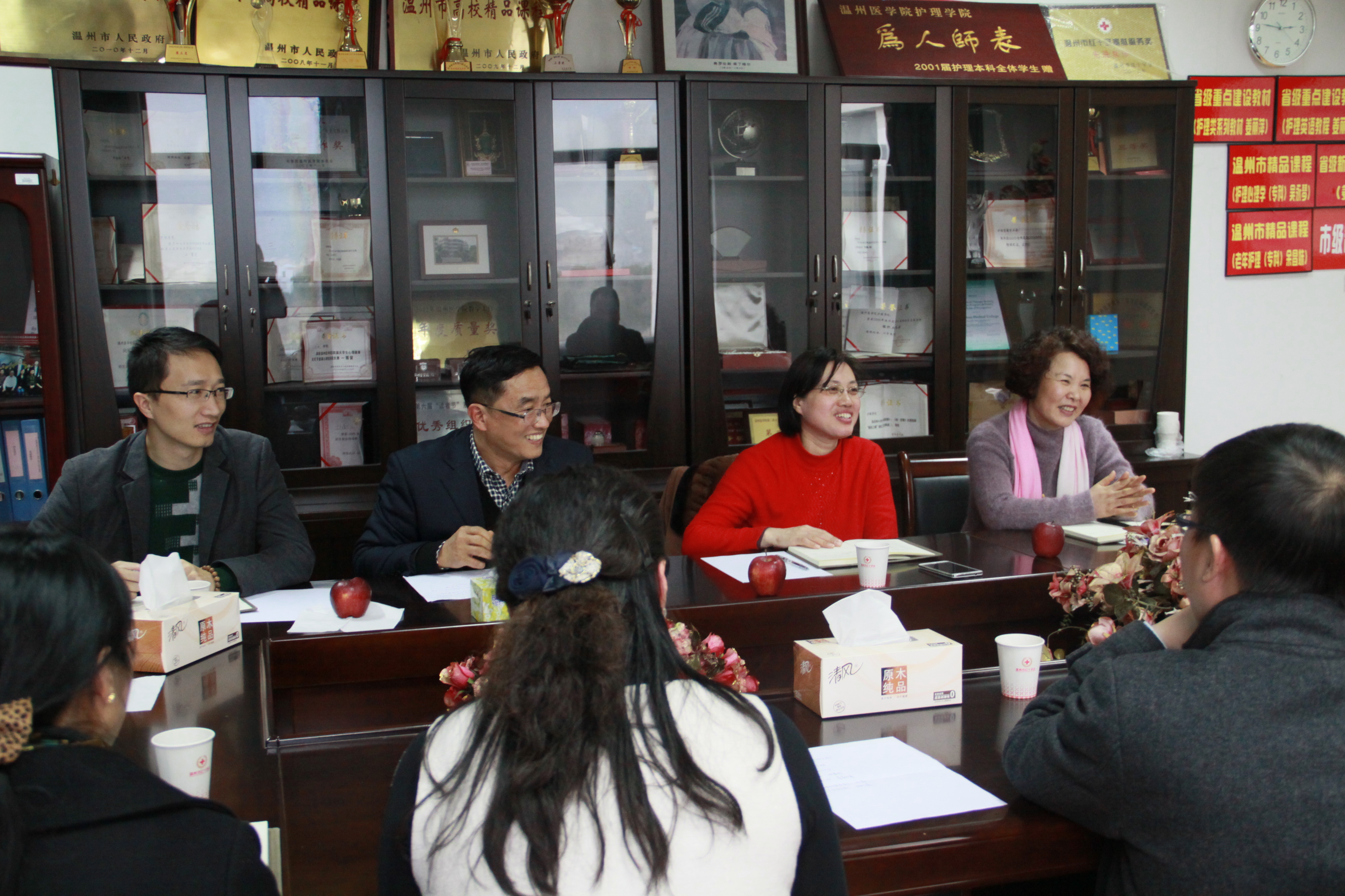温州医科大学bb贝博艾弗森官网姜丽萍院长介绍了温州医学院bb贝博艾弗森官网的基本情况,温州医学院bb贝博艾弗森官网已获得省级实验教学示范中心、省十二五优势专业和省重点学科。茶山新校区护理实验中心投资600多万元,实验室使用面积达3350.34余平方米。现拥有配套齐全的妇儿实验室、模拟病房、模拟人实验室、康复社区护理实验室等,以及可容纳120人的现代化护理示教室2个。随后双方就学院特色、机构设置、学生工作亮点等问题展开了热烈交流和探讨。