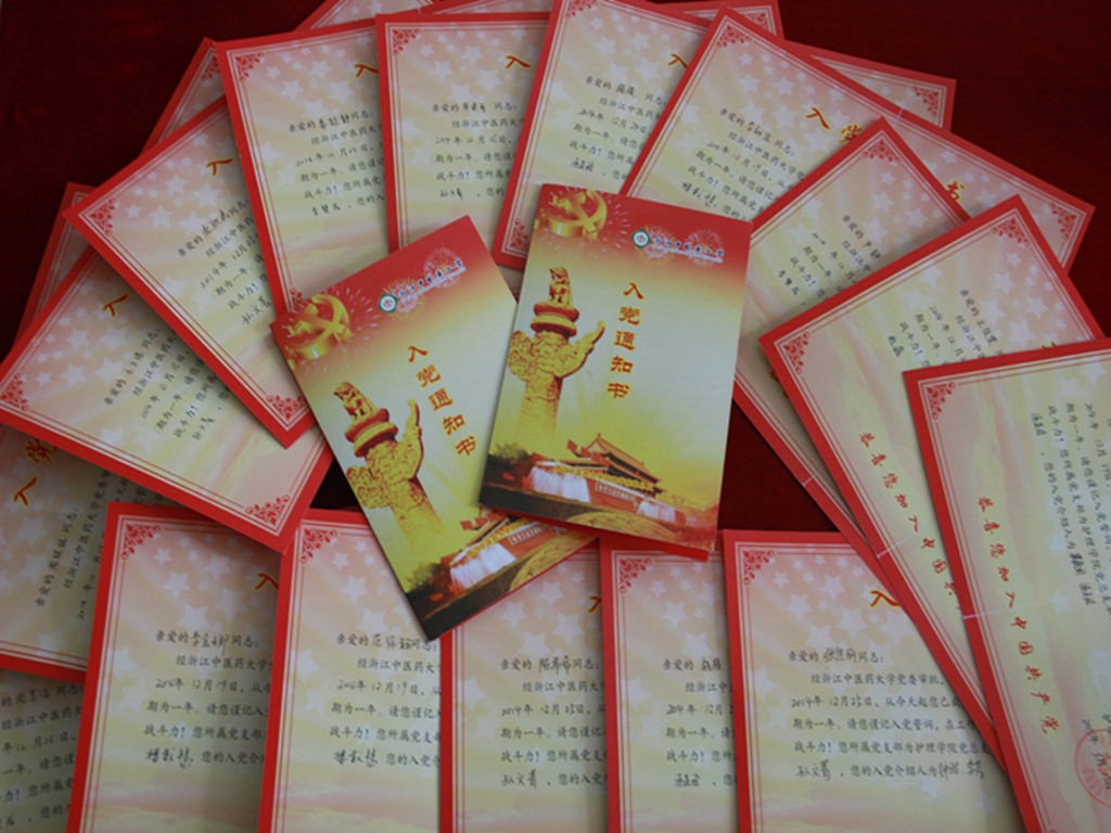 学院党总支副书记刘师少对活动进行了高度赞扬并对新发展的党员提出了几点期望和要求:第一,加强党性修养,提高自身素质;第二,具备成为一名优秀的护士所应该有的清晰思路以及技术与技能的完美结合;第三,无论在校园学习阶段,还是在即将面临的实习阶段以及在将来的临床工作阶段都要起模范带头作用。之后,由学院党总支副书记董凯峰老师宣布了参加本次宣誓的新发展党员名单。两位领导为新发展党员颁发了“入党通知书”,恭喜她们加入了中国共产党。新发展党员代表、正式党员代表、入党积极分子代表依次发言。接下来,在领誓人的带领下, 21名新发展党员面对党旗宣誓,表明了她们遵守誓词各项内容的决心,以及对党组织和党的事业承担的政治责任。最后,宣誓仪式在全体新发展党员嘹亮的国歌声中圆满落幕。