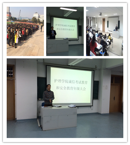 本次专题教育工作,学院高度重视,通过多个层次不同角度来部署。首先,学院党总支副书记董凯峰召开全体学工干部例会专题研究诚信及安全教育,统一规范全院宣讲提纲和内容,并要求通过年级大会的形式对学生进行专题教育;其次,学院召开了全体班主任会议,要求各个班主任老师通过主题班会的形式对学生进行专题教育;再次,要求各学生党支部和团学组织做好带头引导工作,充分发挥学生党员和学生干部的先锋模范作用,学生骨干要以身作则,树立自身良好形象,带头做出诚信考试的承诺。