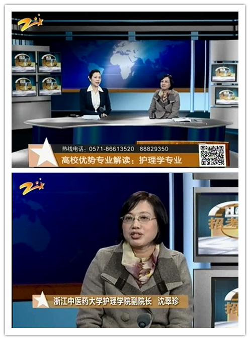 近日,bb贝博艾弗森官网bb贝博艾弗森官网副院长沈翠珍应邀做客浙江教育科技频道“招考热线”节目,就我校护理学专业的招生、就业、教学等问题进行了答疑解惑,进一步展示了我校护理学专业的学科发展和就业优势。