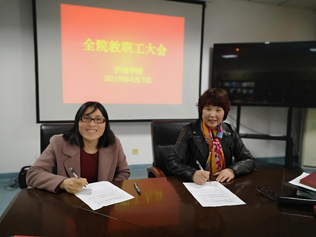 4月3日下午,bb贝博艾弗森官网在会议室举行2019年度目标任务书签约仪式,院长何桂娟、副院长沈翠珍、党总支副书记林觐民及全体教师参加。