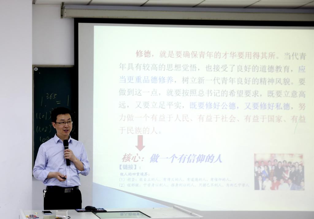 方年根书记以“伟大梦想与青年责任”为题,从习近平总书记对青年的殷切期望、当代青年责任意识现状调查、青年如何立德修身堪当大任三个方面进行了讲解,号召同学们崇德修身,努力担当起历史重任,为实现伟大梦想贡献青春与力量。方书记授课内容既有理论的高度、宏观的视野,又有详实的数据、微观的分析。他风趣幽默的讲课风格,丰富的案列讲解赢得了在场同学的阵阵掌声。