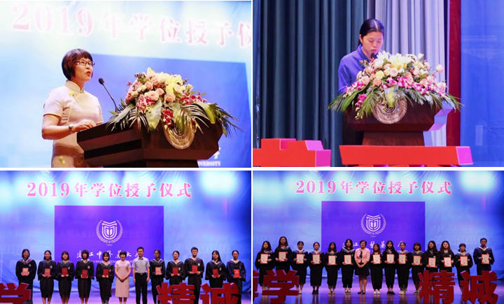 何桂娟院长、方年根书记为省级优秀毕业生和校级优秀毕业生代表颁发证书,沈翠珍副院长为校友联络员颁发聘书。在学位授予仪式上,孙秋华教授、赵峰教授、何桂娟教授、沈翠珍教授、马小琴教授、裘秀月教授共同为全体毕业生颁发学位证书并为毕业生一一拨穗。