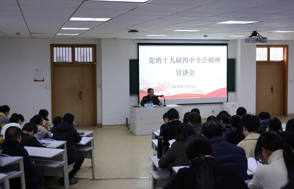 12月4日下午13:30,bb贝博艾弗森官网、基础医学院近200名教职员工欢聚在21号楼518教室,共同聆听赵峰副校长所作的党的十九届四中全会精神宣传报告。宣讲会由bb贝博艾弗森官网党总支书记方年根主持。