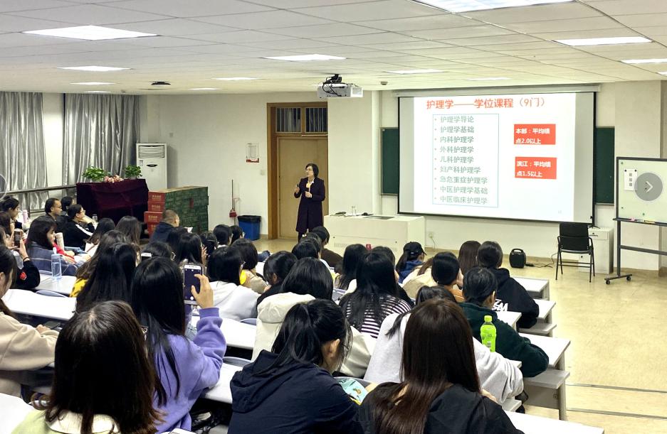 定计划,严学严查抓学风。优良学风的形成离不开学院的政策指引,学院依据护理学、助产学专业的发展需求,制定详细完整的专业计划,由沈翠珍副院长主讲,为学生明确专业目标打下坚实基础。此外,学院通过班级自查、“党员先锋岗”督查及辅导员、班主任进课堂、下公寓等方式了解学风、狠抓学风、提升学风。