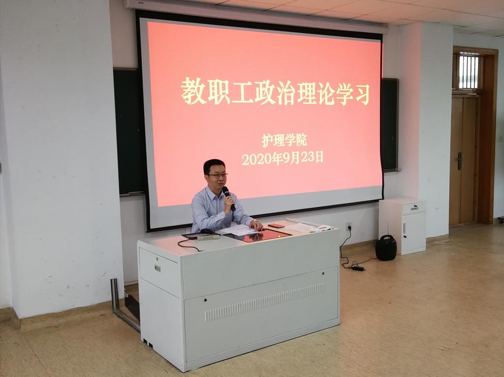9月23日下午,bb贝博艾弗森官网党总支在21518教室举行新学期首次教职工政治理论学习,学院全体教职员工参加。学习会由学院党总支书记方年根主持。本次政治理论学习的主要目标是“以‘学’强‘神’”,这个“神”就是凝聚着工作作风、师德师风、医德医风和院风学风的“情怀、使命和品牌”。学习活动继续坚持学院“五不五有”教职工政治理论学习模式,突出彰显三大特点: