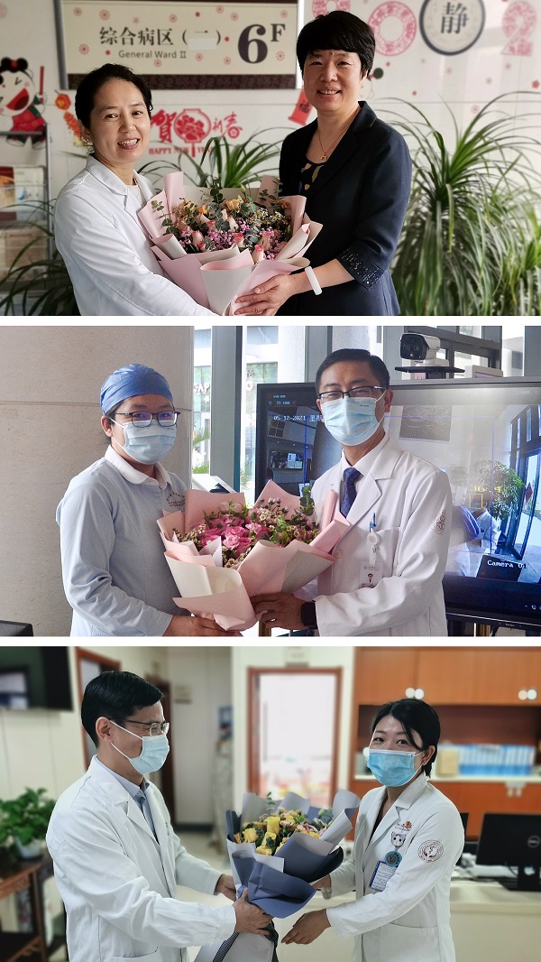 5月12日上午,附属三院党委书记马慧娟、院长林咸明带领党政领导班子成员兵分四路,分别慰问了护理部及奋战在莫干、庆春、滨江、半山30个护理单元的一线护理工作者,向兢兢业业、守护健康的白衣天使们致以节日问候。