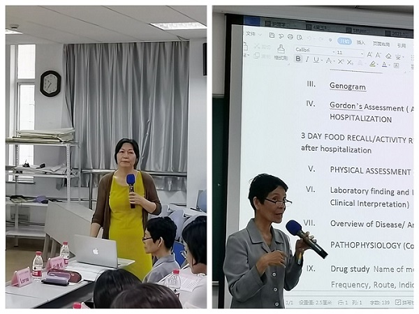 学院两位外籍教师也为参会老师分享了自身的经验。外籍教师孙穗明送出寄语:教师是学生“引路人”,在教学过程中“要真,要实,要亲,要诚”,呵护学生“爱心,负责”良好品质的形成。来自菲律宾的Lorna老师介绍了护理学专业留学生的学习特点,并分享了菲律宾学生的一些护理实习表格和记录单,进一步让与会老师了解了本科国际护生的实习要求与管理制度。