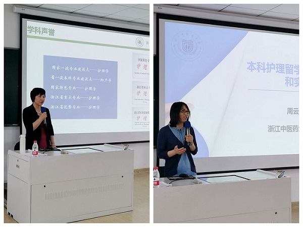 随后,周云仙副院长详细解读了护理学本科留学生培养方案和实习大纲。分别从培养目标、实习大纲及实习手册三个方面着重介绍。强调国际留学生应具备较好的临床护理能力、职业素养和发展潜能,培养他们具有国际视野,并能在各国医疗卫生、保健及康复机构从事护理工作的能力。同时,周云仙院长根据最新中英双语编制的《留学生毕业实习手册》,介绍了毕业实习的组织与管理,实习时间及各科实习教学大纲,各科室毕业实习记录表等内容。这些内容总体来说与同专业同层次中国学生趋同,同时也有部分留学生的特色。