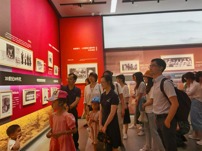 在讲解员的介绍下,大家了解到该基地以新中国成立后农村普通妇女群众为主题,展示了千鹤妇女从家门走向农田的历程,记录了毛主席亲赞千鹤妇女的光辉时刻。栩栩如生的人物雕像、身临其境的场景模拟让我们仿佛置身在那个年代;一行行文字、一张张黑白照片让我们感受到强烈的精神鼓舞。