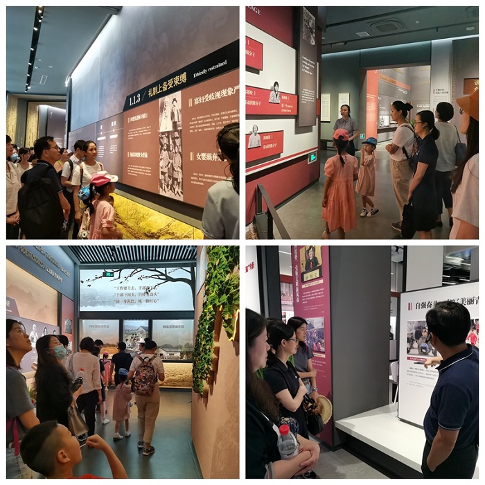上午,在建德千鹤妇女纪念馆,老师们在一张张千鹤妇女参与生产劳作的老照片和一件件包含当年历史记忆的老物件前驻足观看。上世纪50年代以来,千鹤妇女在党的领导下,打破旧习俗,在自强奋斗中撑起半边天,在创新创业中敢为天下先,在忠诚奉献中共圆家国梦。老师们对千鹤妇女的事迹和精神深受鼓舞,在心中也种下了践行学习千鹤妇女的种子,努力在新时代下不断实现自己的人生价值。