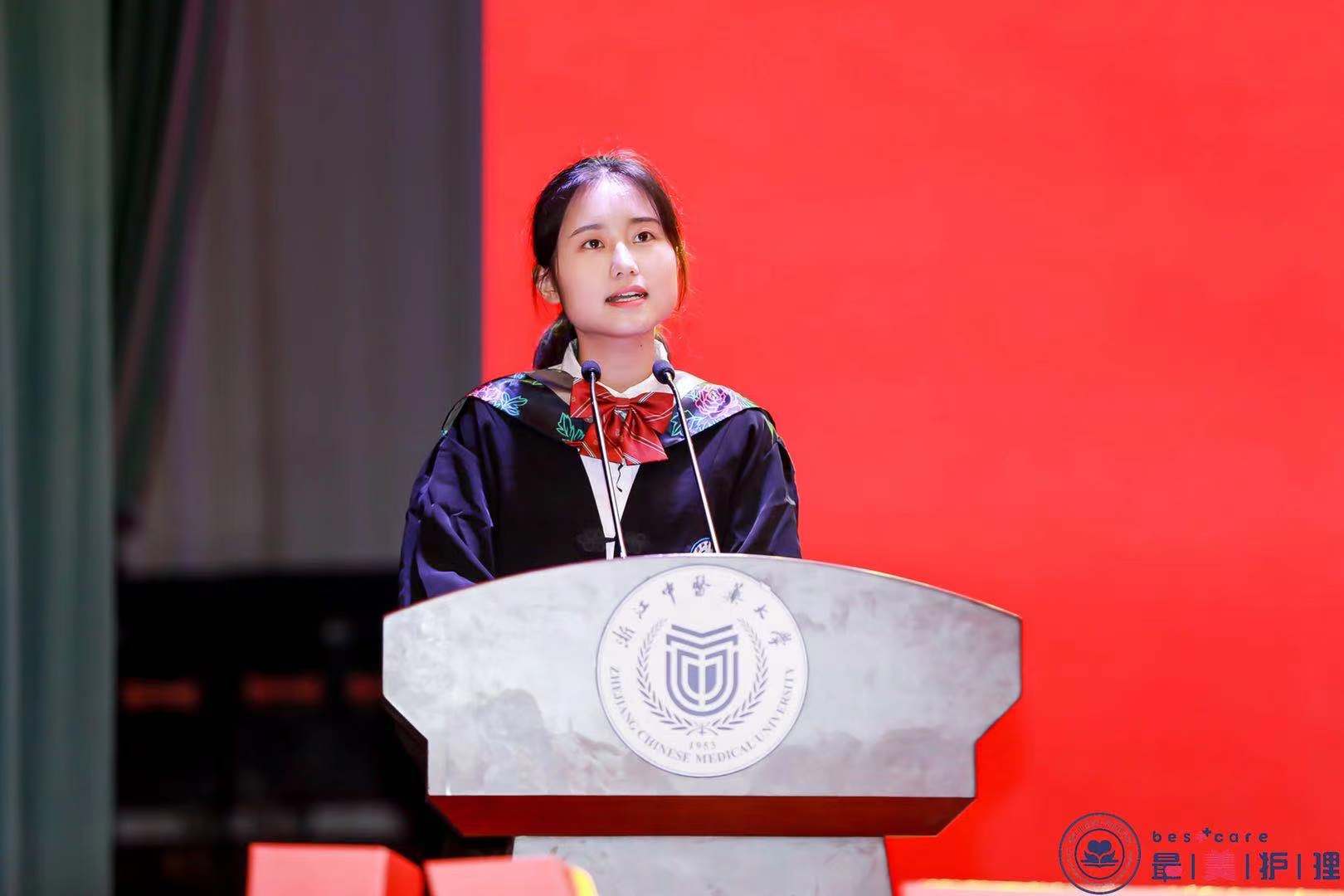 毕业典礼在庄严的国歌中拉开了序幕,副校长罗伟明宣读了学校学位委员会授予学位的决议。何桂娟院长代表全院教职员工对全体毕业生表示祝贺,勉励同学们在变革的交织和激荡中思考、历练和完善自我,在建设祖国的伟大事业中成就自己的人生梦想,并对全体毕业生提出四点希望,作为临别赠言。希望同学们胸怀梦想,心系护理;希望同学们砥砺前行、奋斗不止;希望同学们勇于挑战、奔赴未来;希望同学们情牵母校、共书精彩。