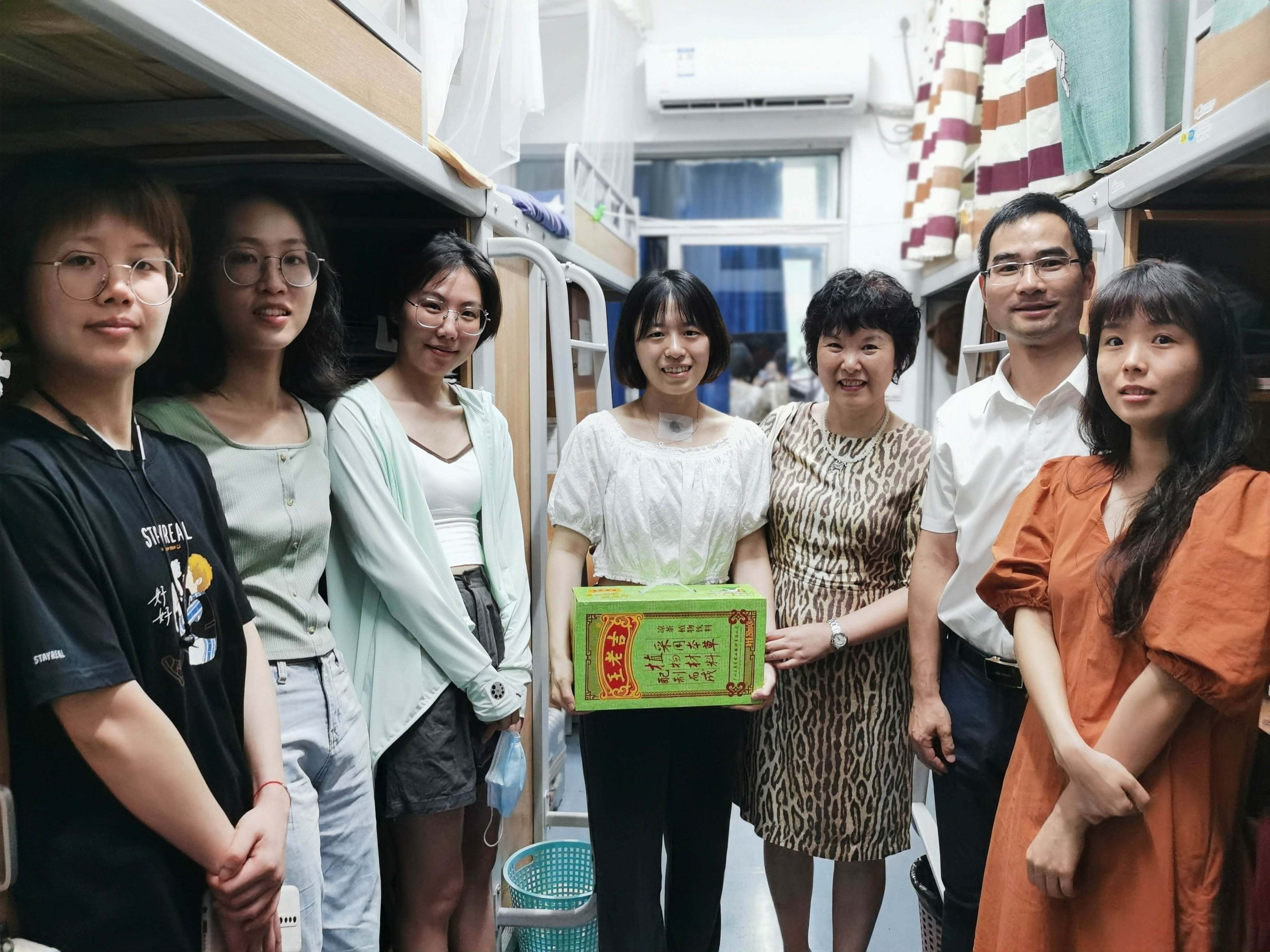 7月21日傍晚,学院领导和辅导员们兵分两路。院长何桂娟、党委副书记林觐民等一行来到校内宿舍,走访慰问了各年级研究生,并给每一位留校学生准备了凉茶饮料,同时更表达了学院对研究生同学们留校生活的关心。老师们询问了留校研究生的论文发表等进展情况;宿舍空调制冷效果和生活情况。同学们也就学业科研中取得的成绩和生活中遇到的困难向学院老师进行了汇报交流。学院老师们对研究生们取得的成果给予认可并叮嘱暑期天气炎热,希望同学们劳逸结合,注意防暑降温。