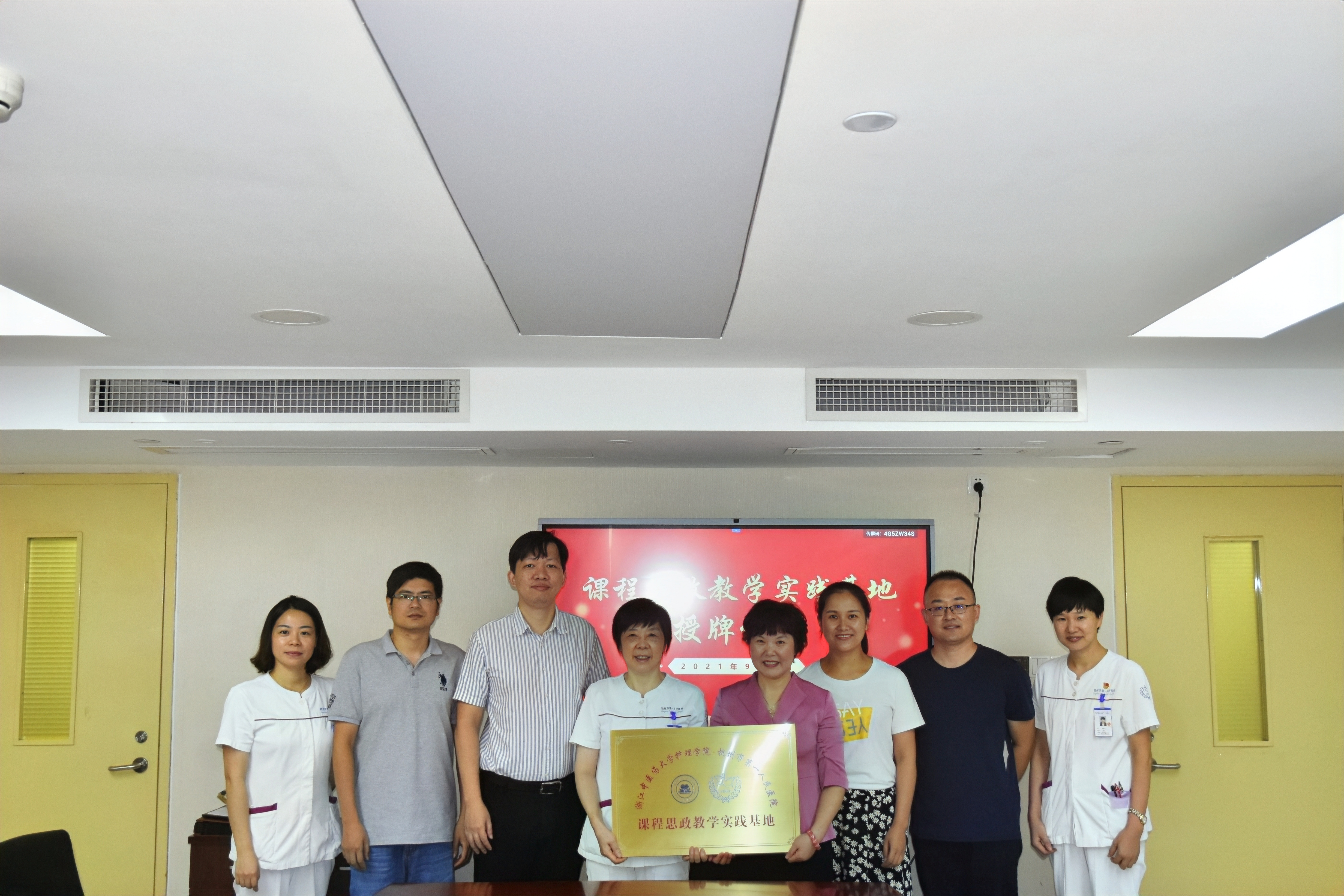 2021年9月9日上午,bb贝博艾弗森官网bb贝博艾弗森官网“课程思政教学实践基地”挂牌仪式在杭州市第一人民医院举行。bb贝博艾弗森官网院长何桂娟、杭州市第一人民医院护理部主任李益民、教学部副主任张方捷、护理部副主任宁丽、金建芬、四临办公室副主任吕曦、护理部科护士长和教研室核心成员,以及bb贝博艾弗森官网辅导员、教学管理人员参加了本次挂牌仪式。此举标志着bb贝博艾弗森官网与杭一护理部在推进护教协同育人方面进入新阶段。