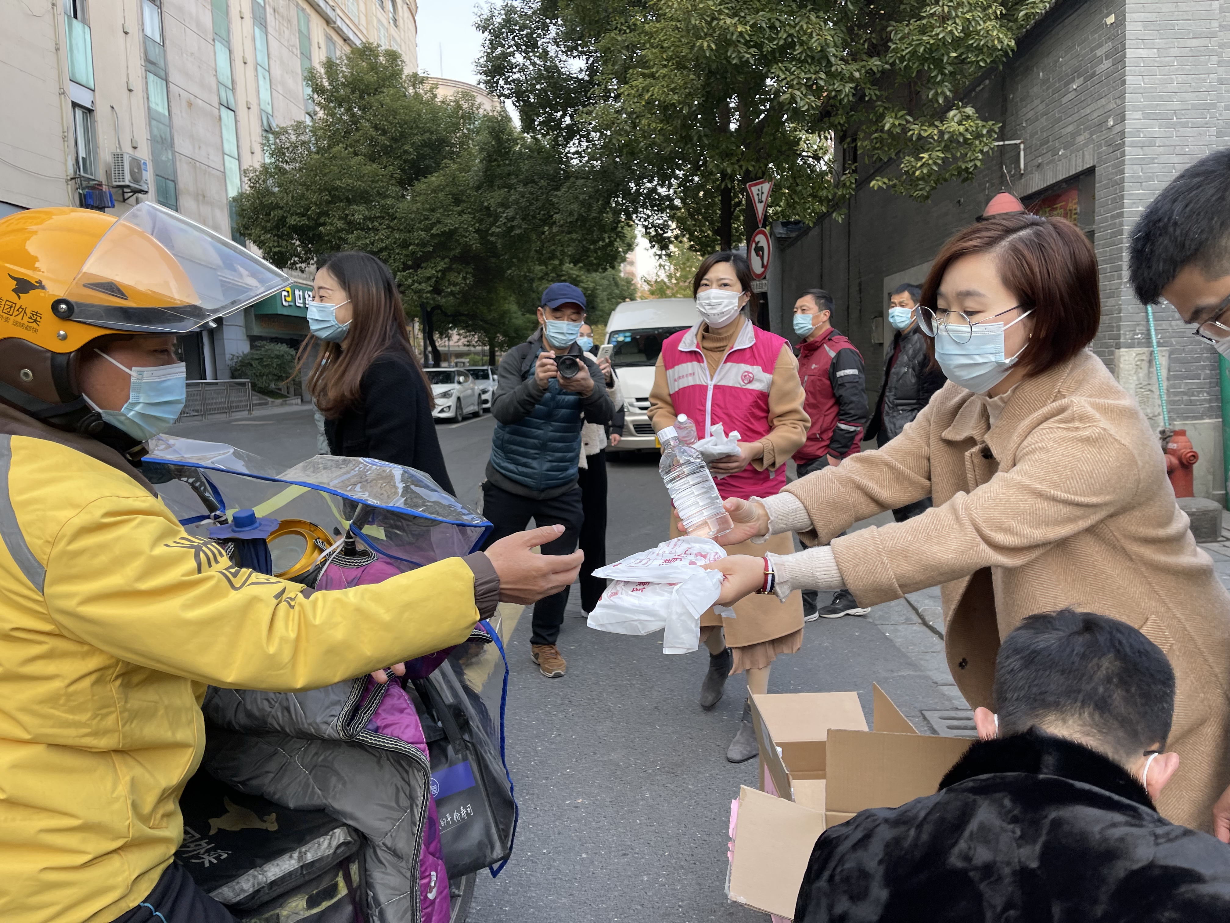 12月13日下午,bb贝博艾弗森官网联合上城区妇联和湖滨街道党工委,将一批校友企业捐赠的价值上万元的防疫物资,分发给快递小哥、网约车司机等新业态劳动者,为我们城市运行默默付出与奉献的无名英雄送去深深的关怀与敬意。
