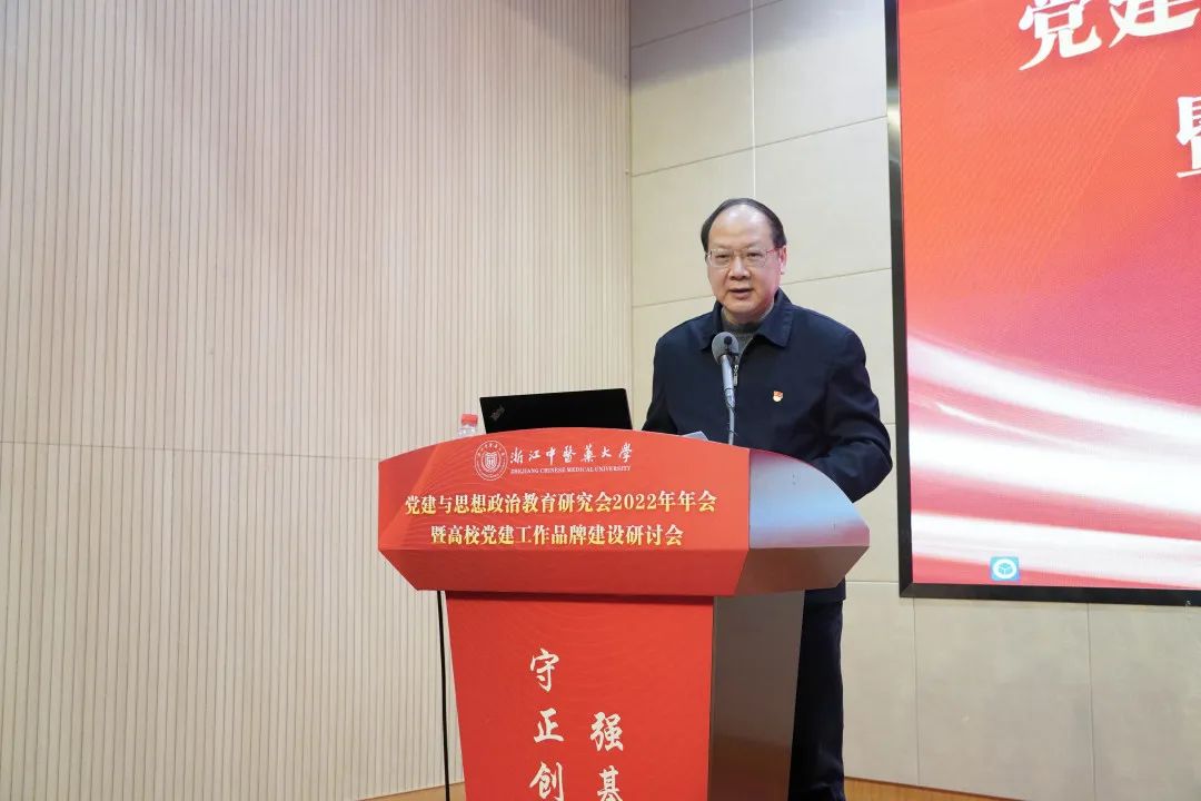 上午,在图书馆报告厅主会场组织了专家报告、优秀论文颁奖等活动。会议邀请了“全国党建工作示范高校”建设单位中国美术学院党委书记金一斌、“全国党建工作标杆院系”建设单位浙江工业大学化学工程学院党委书记王雷、全国高校“双带头人”教师党支部书记工作室建设单位浙江农林大学林业与生物技术学院党委书记郑炳松、“全国党建工作样板支部”建设单位广州中医药大学针灸康复临床医学院党委书记张正、浙江康恩贝制药股份有限公司党群工作部部长张佩佩作报告。学校党委书记黄文秀在总结时就进一步做好2023年学校党建和思想政治工作提出要抓好政治建设、要抓好思想建设、要抓好基层组织建设、要抓好干部人才队伍建设、要抓好党风廉政建设、要抓好统战群团工作等6项具体要求,号召二级党组织推进学校党建与思想政治工作走深走实、补短创优、提质增效,保障和助推一流中医药大学建设。
