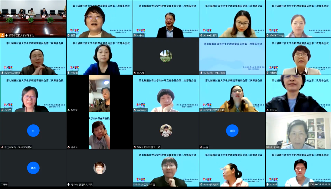 4月11日晚上,第七届浙江省大学生护理竞赛委员会第二次会议以线上线下结合的方式顺利召开。竞赛委员会主任孙秋华教授、专家委员会主任叶志弘教授以及全体竞赛委员会委员、秘书长何桂娟教授、我校教务处副处长李洪涛、承办单位丽水学院医学院副院长李彩福等参加会议。会议由孙秋华教授主持。