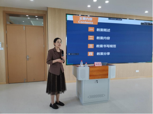 杨莉莉老师分享了教案书写,介绍教案设计的重点和要点内容,注意用语规范、布局合理,并强调要对教案进行反思与更新,保证教学内容与时俱进。
