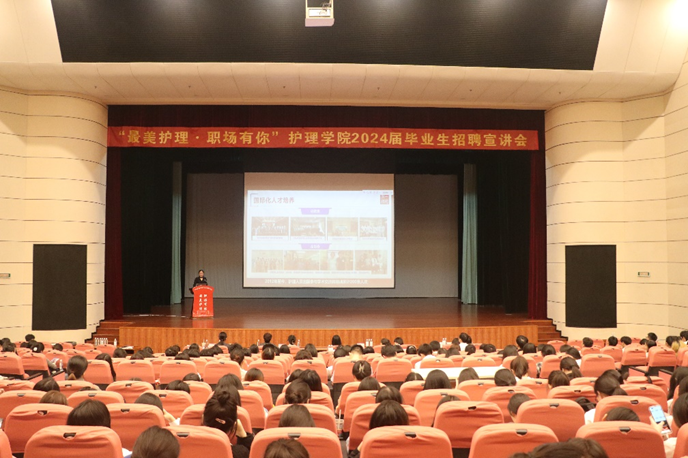 紧接着,参会的各家医院护理部负责人为同学们详细介绍了医院的整体情况、用人需求、用人机制、护理人员发展平台等信息。通过此次招聘集中宣讲会,同学们对医院的整体情况有了更为全面的了解,对今年招聘形势、护理发展平台和前景有了更理性的认识。
