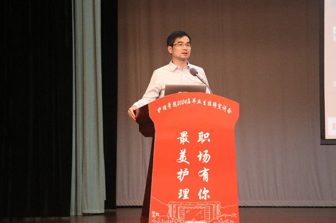 宣讲会伊始,林觐民副书记代表学院感谢各用人单位的大力支持,他指出,学院一直以来高度重视培养学生的实践能力,着力提升学生的专业素养与就业能力,希望医院与学院在协同育人方面加强合作,为医院输送更多优秀的护理人才。此外,还针对毕业生当前所处阶段提出要求,希望毕业生在激烈的就业竞争环境下,要珍惜就业机会,清晰认知自我特点和行业发展,积极根据自身实际做好职业规划,给自己的未来多提供一些选择,踏实走好人生之路。