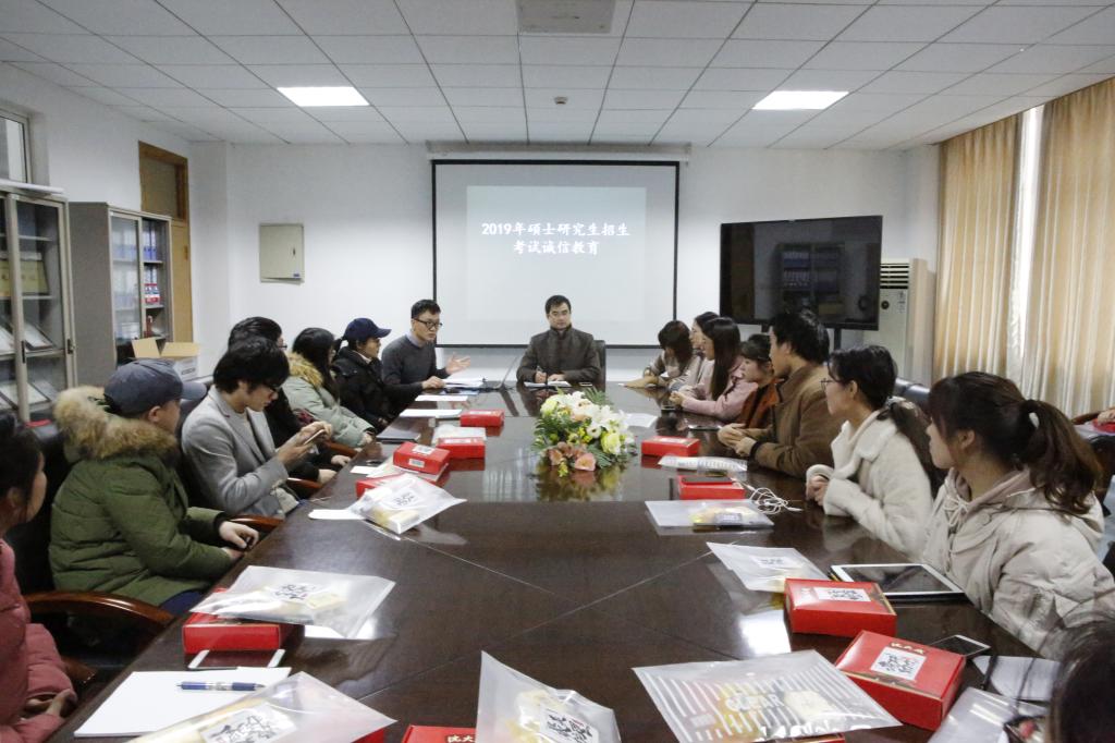 2019年全国硕士研究生招生考试将于12月22日开考,为鼓励2015级毕业班同学在最后的考研冲刺阶段能够充分利用时间,保持学习热情,提高考研士气,bb贝博艾弗森官网于12月19日中午召开考研冲刺动员会暨诚信考试专题教育会。bb贝博艾弗森官网党总支副书记林觐民、学办主任汤亚玲、团委书记王晓梅和年级辅导员霍明、马良及三十余名同学参加了本次动员会。