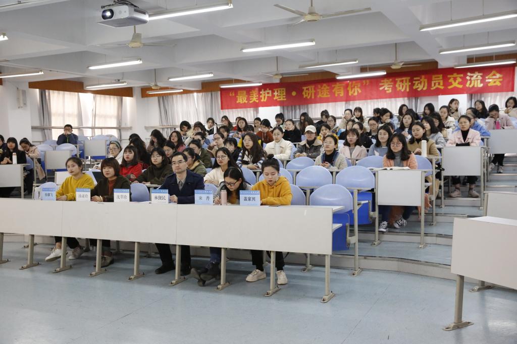 为帮助护生明确考研目标、坚定信念,3月13日下午,bb贝博艾弗森官网组织召开2020届毕业生考研动员交流会。学院副院长沈翠珍、党总支副书记林觐民、学工办主任汤亚玲、护理研究所青年教师宋丹、年级辅导员马良、研究生代表及100余名有考研意向的同学参加了本次动员会。
